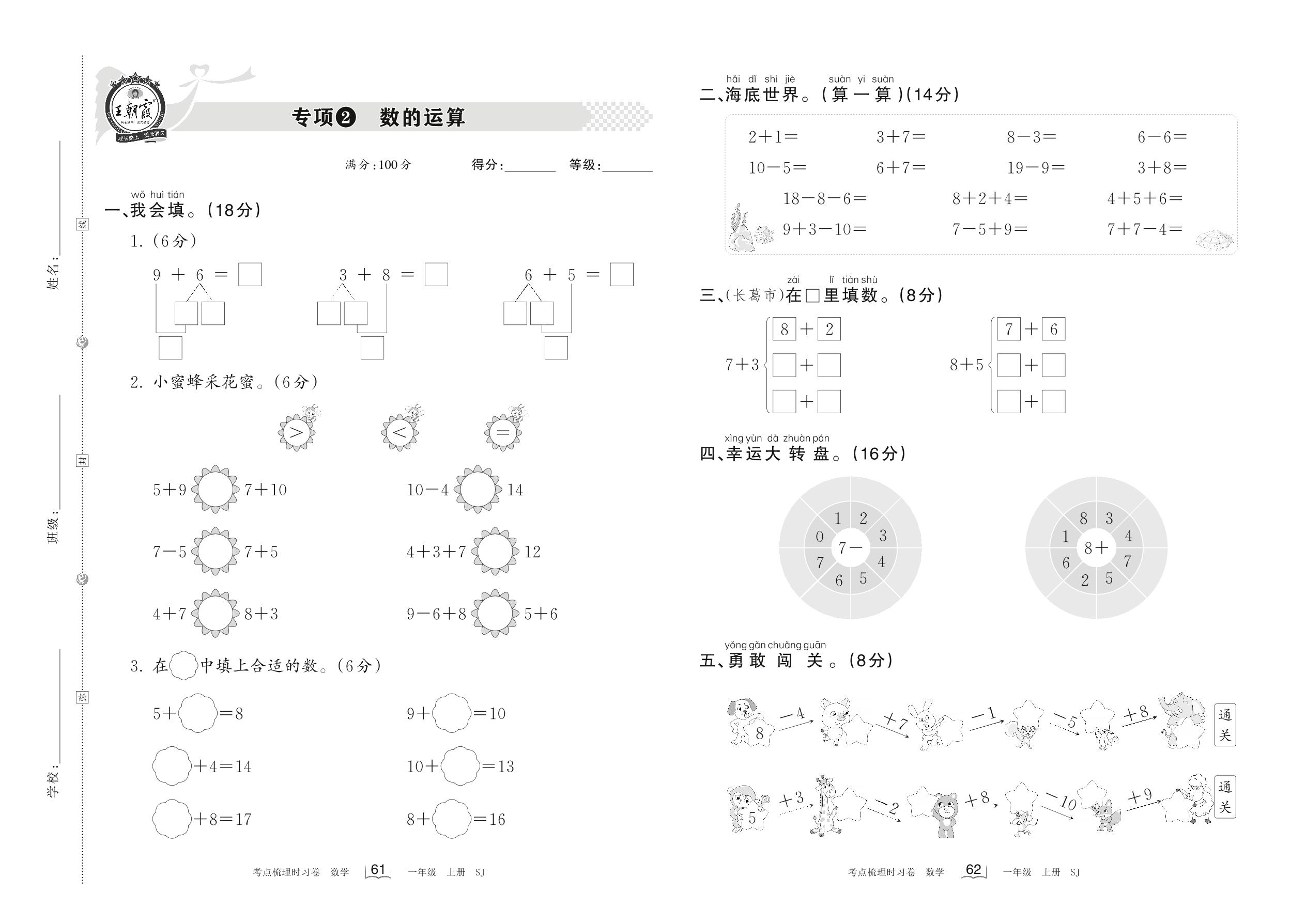 一年级数学苏教版上册专项卷