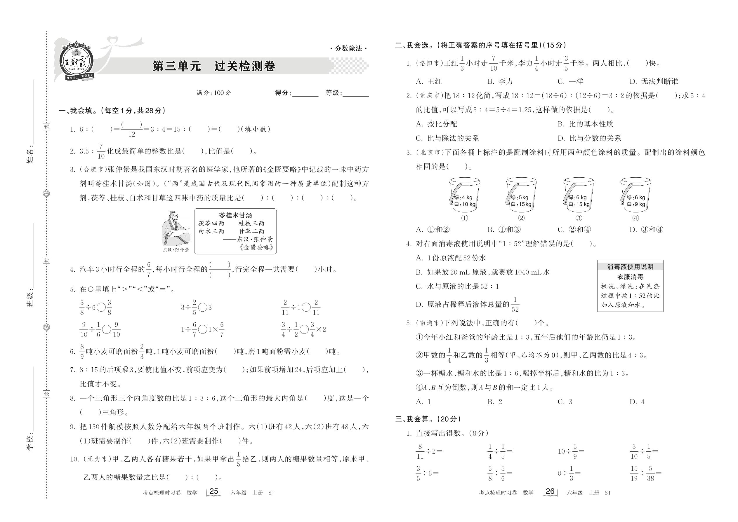 六年级数学苏教版上册单元卷