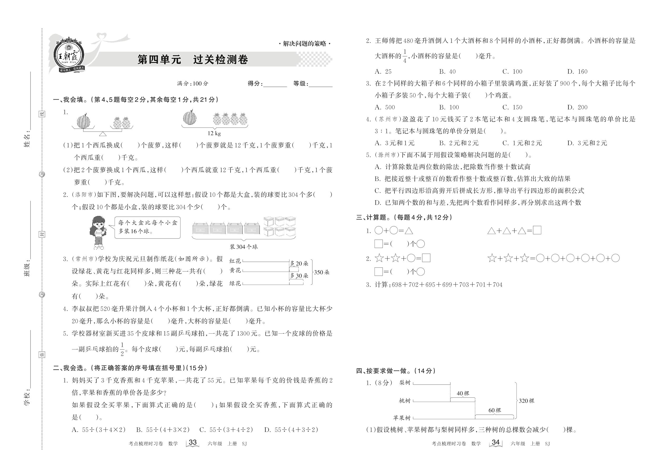 六年级数学苏教版上册单元卷