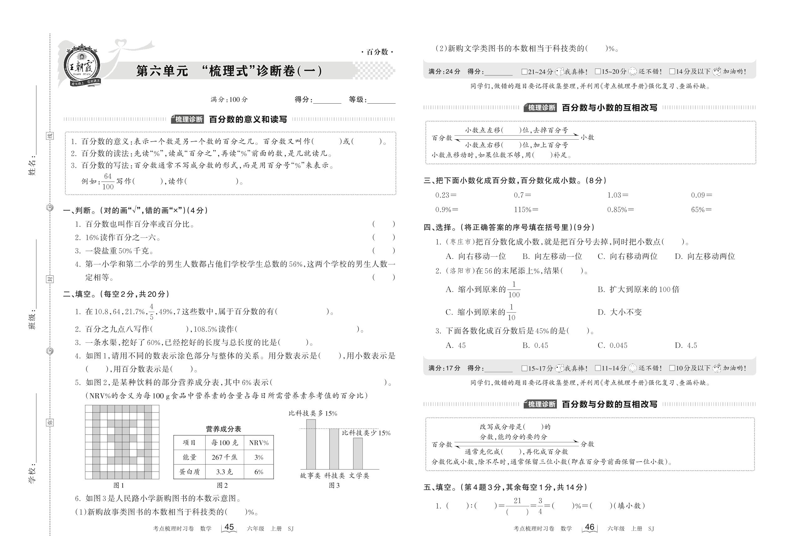 2022上册六年级数学苏教版 第六单元 “梳理式”诊断卷(一)