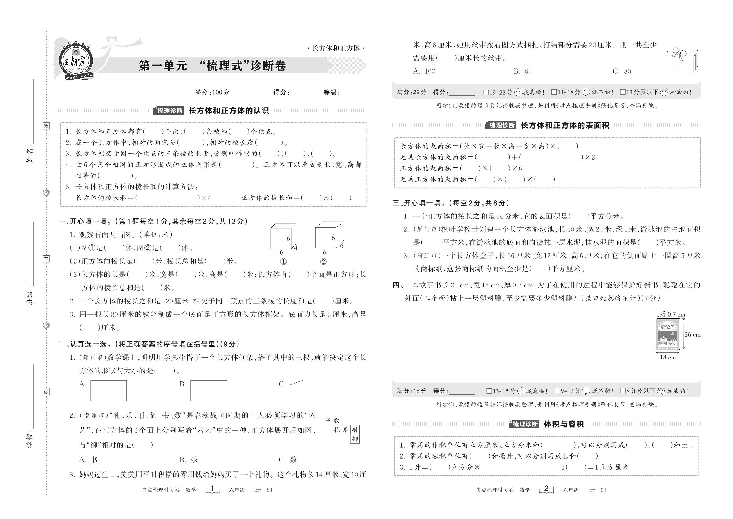 2022上册六年级数学苏教版 第一单元 “梳理式”诊断卷