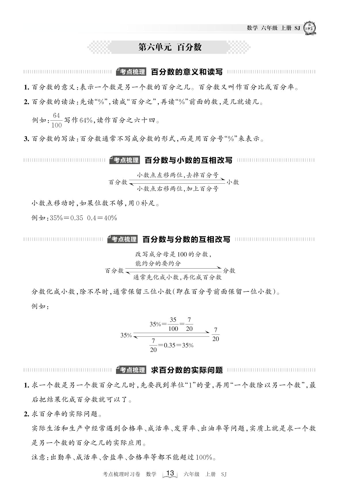 2022上册六年级数学苏教版 考点梳理手册——第六单元 百分数