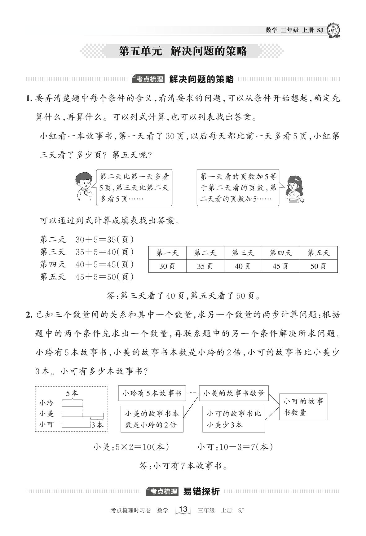 2022上册三年级数学苏教版 考点梳理手册——第五单元 解决问题的策略