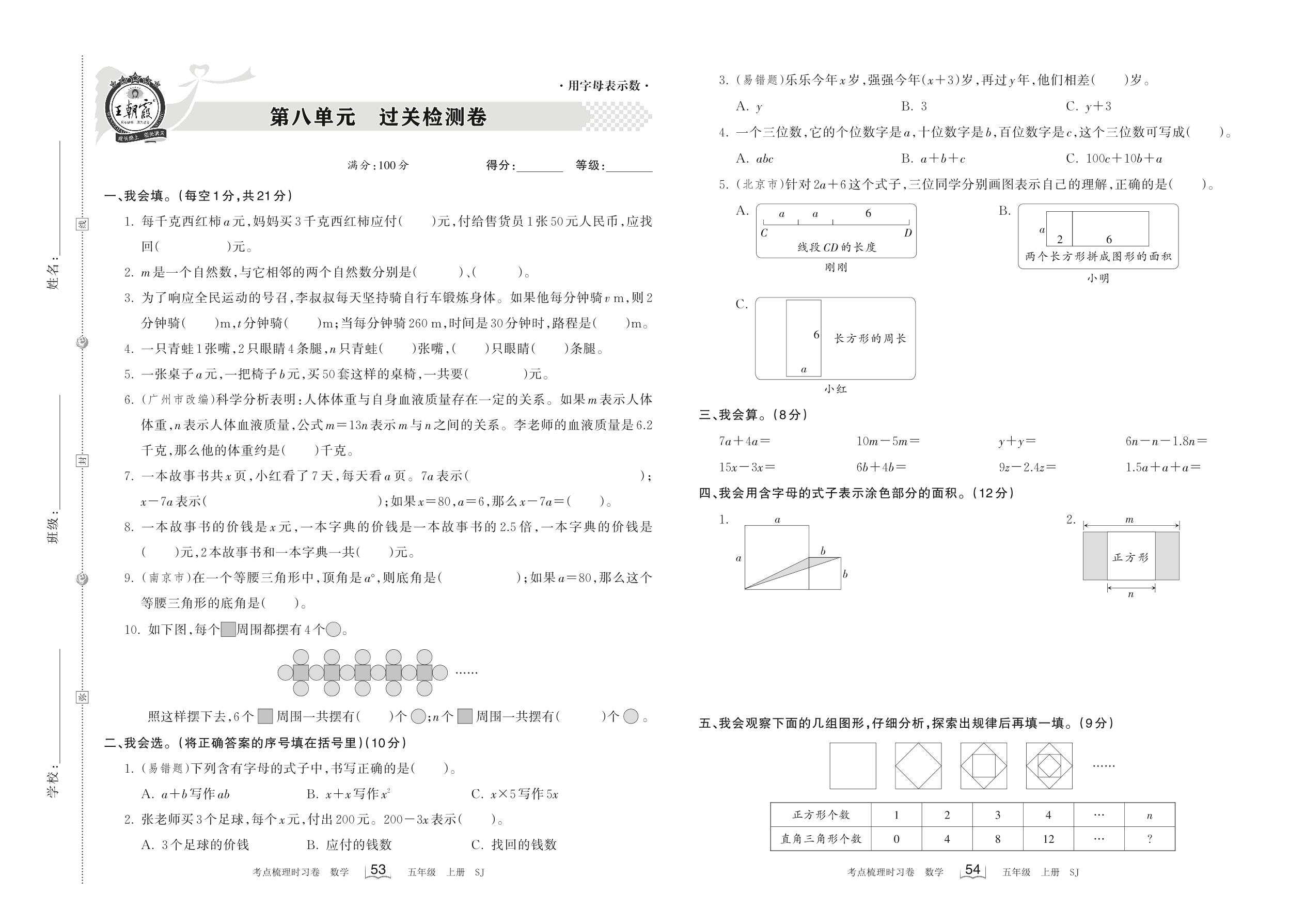 2022上册五年级数学苏教版 第八单元 过关检测卷