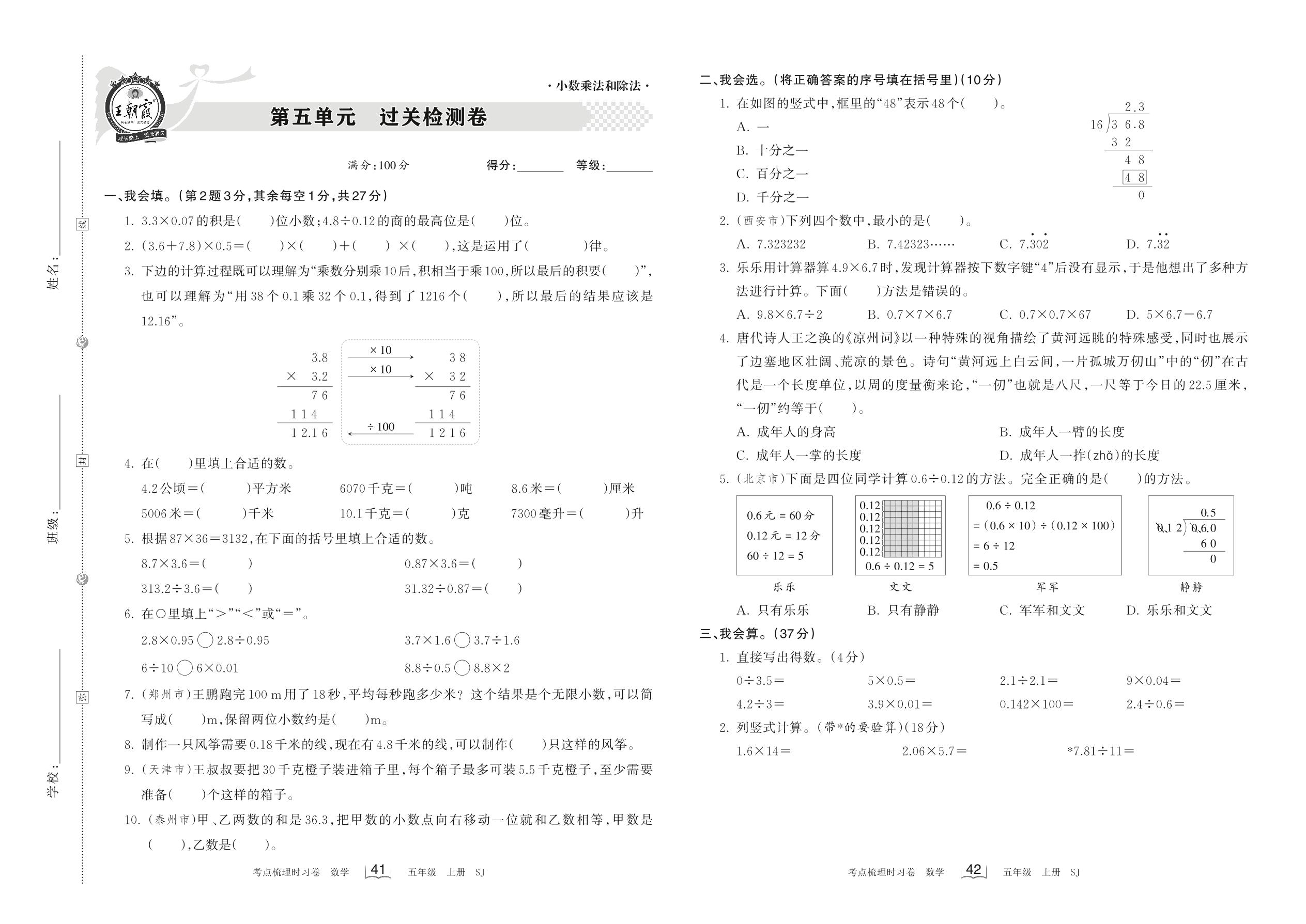 2022上册五年级数学苏教版 第五单元 过关检测卷