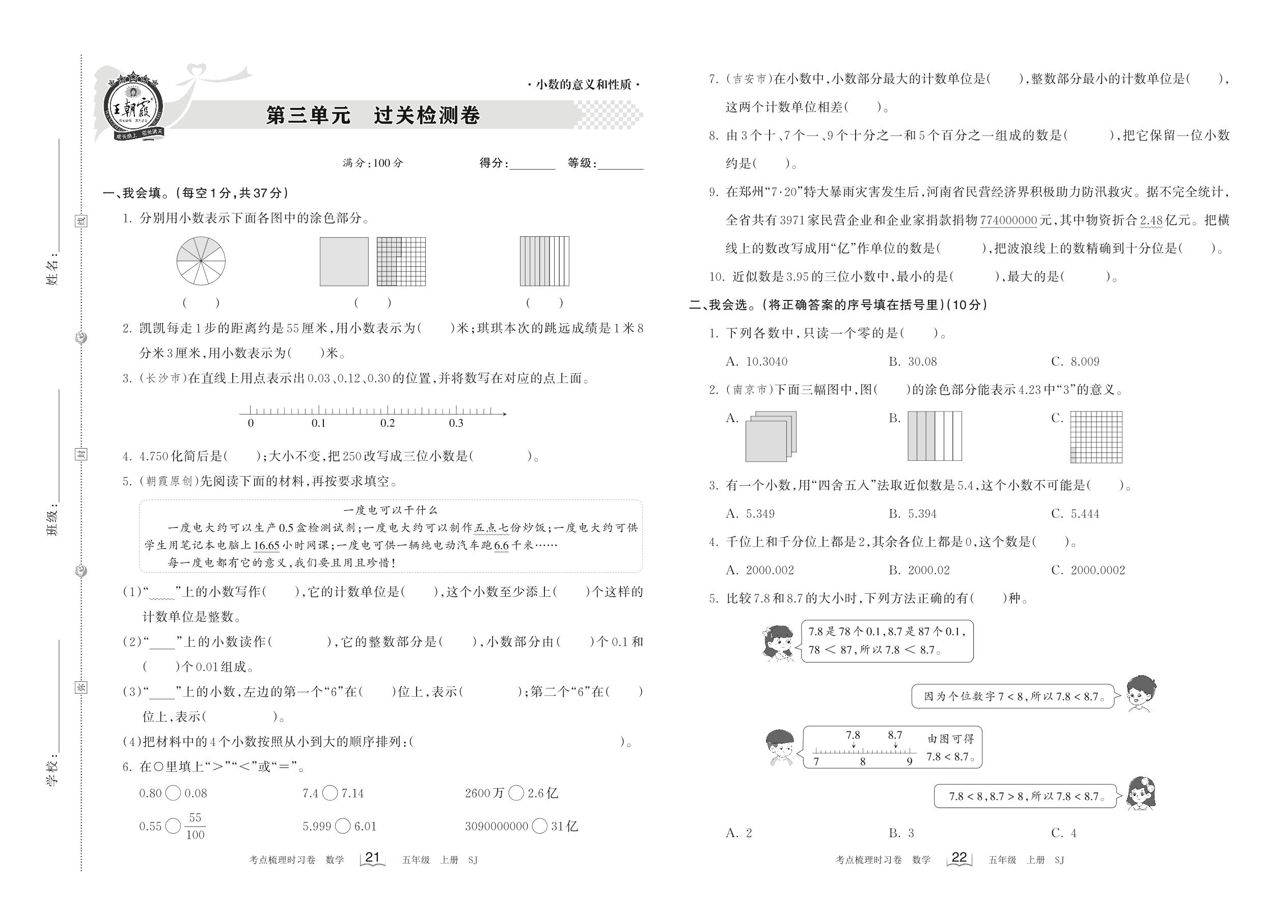 2022上册五年级数学苏教版 第三单元 过关检测卷