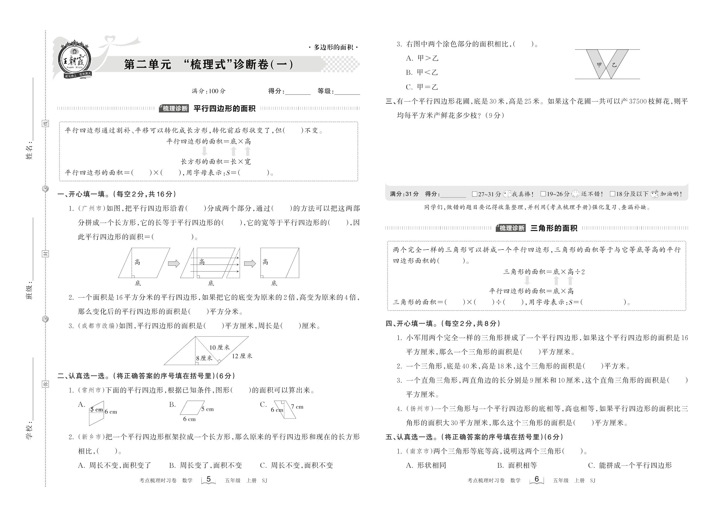 五年级数学苏教版上册单元卷