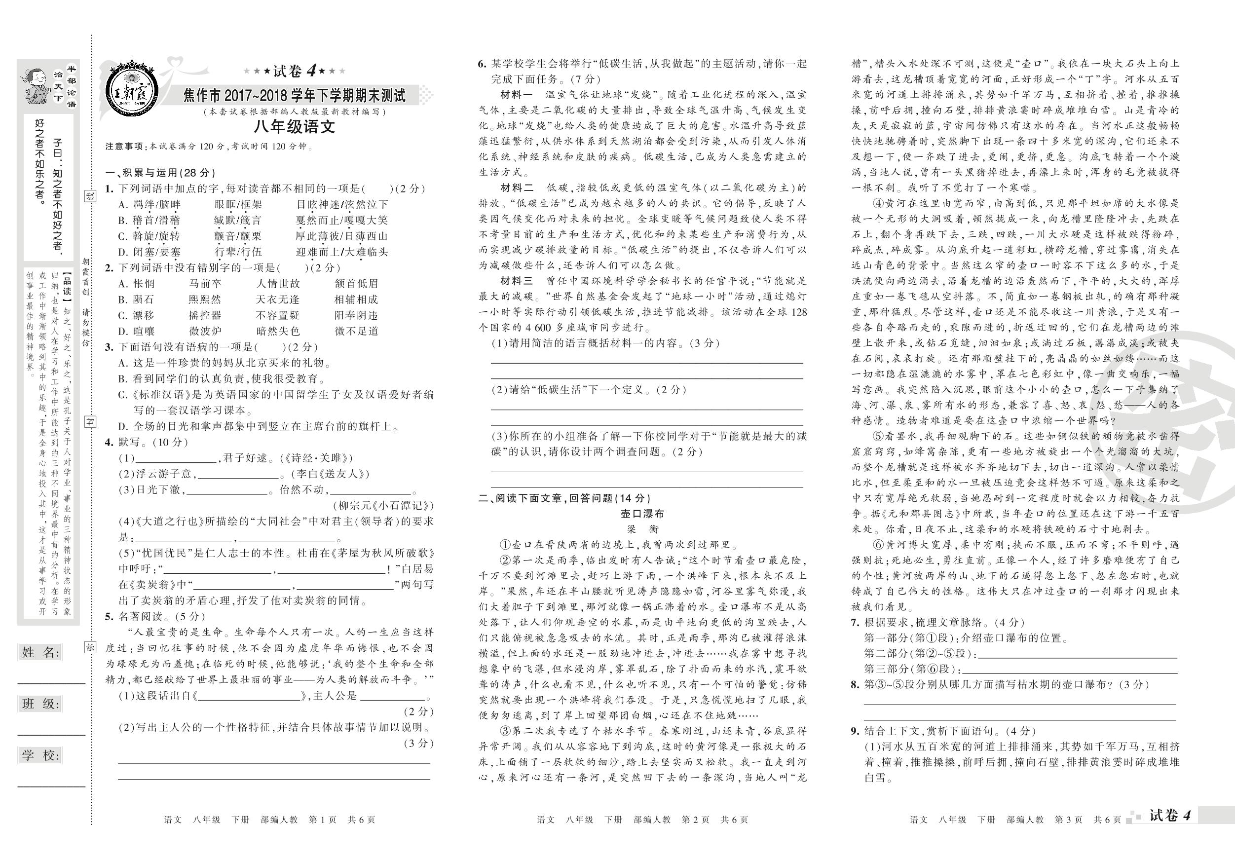 2017-2018学年第二学期焦作市八年级语文试卷(人教版)【4】