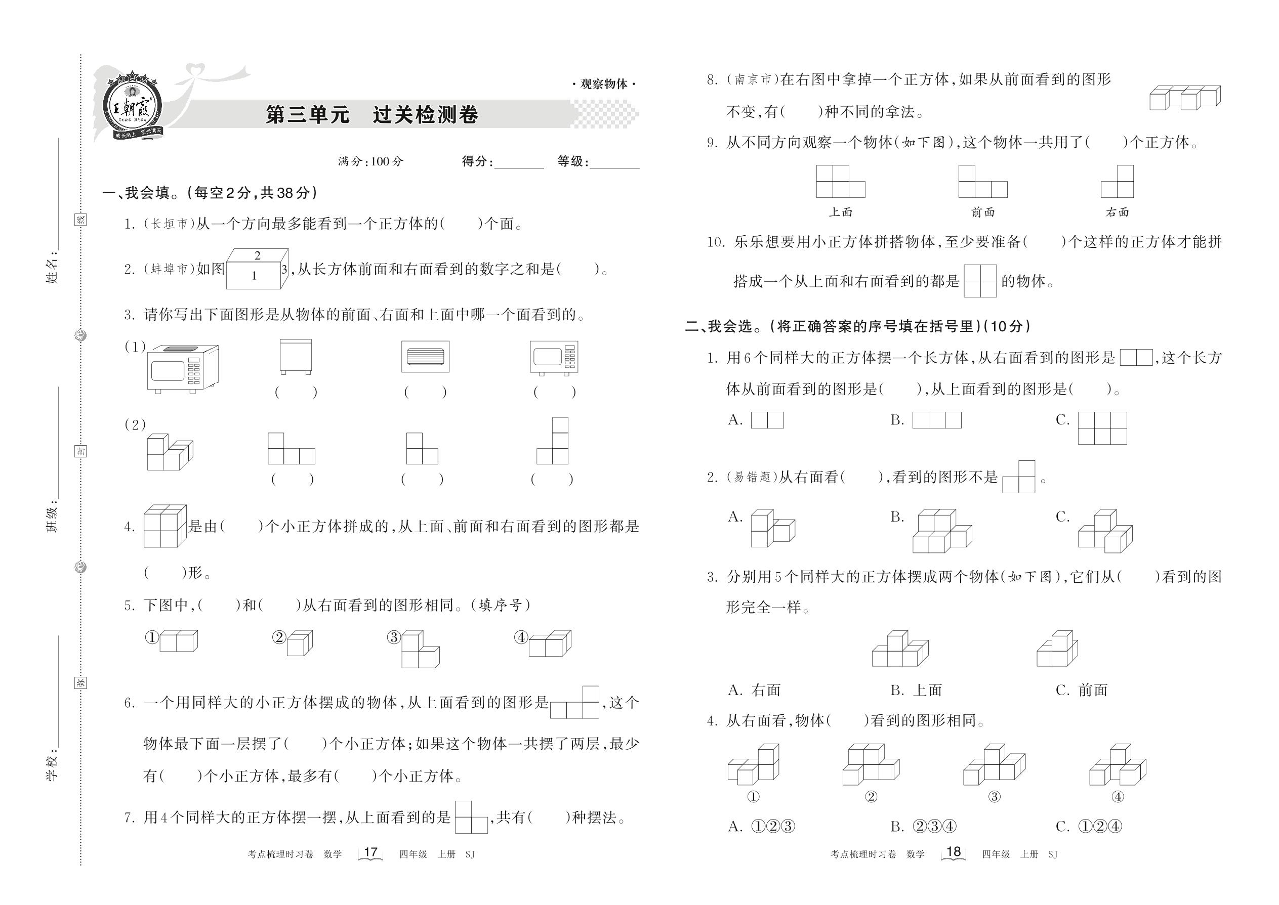 四年级数学苏教版上册单元卷