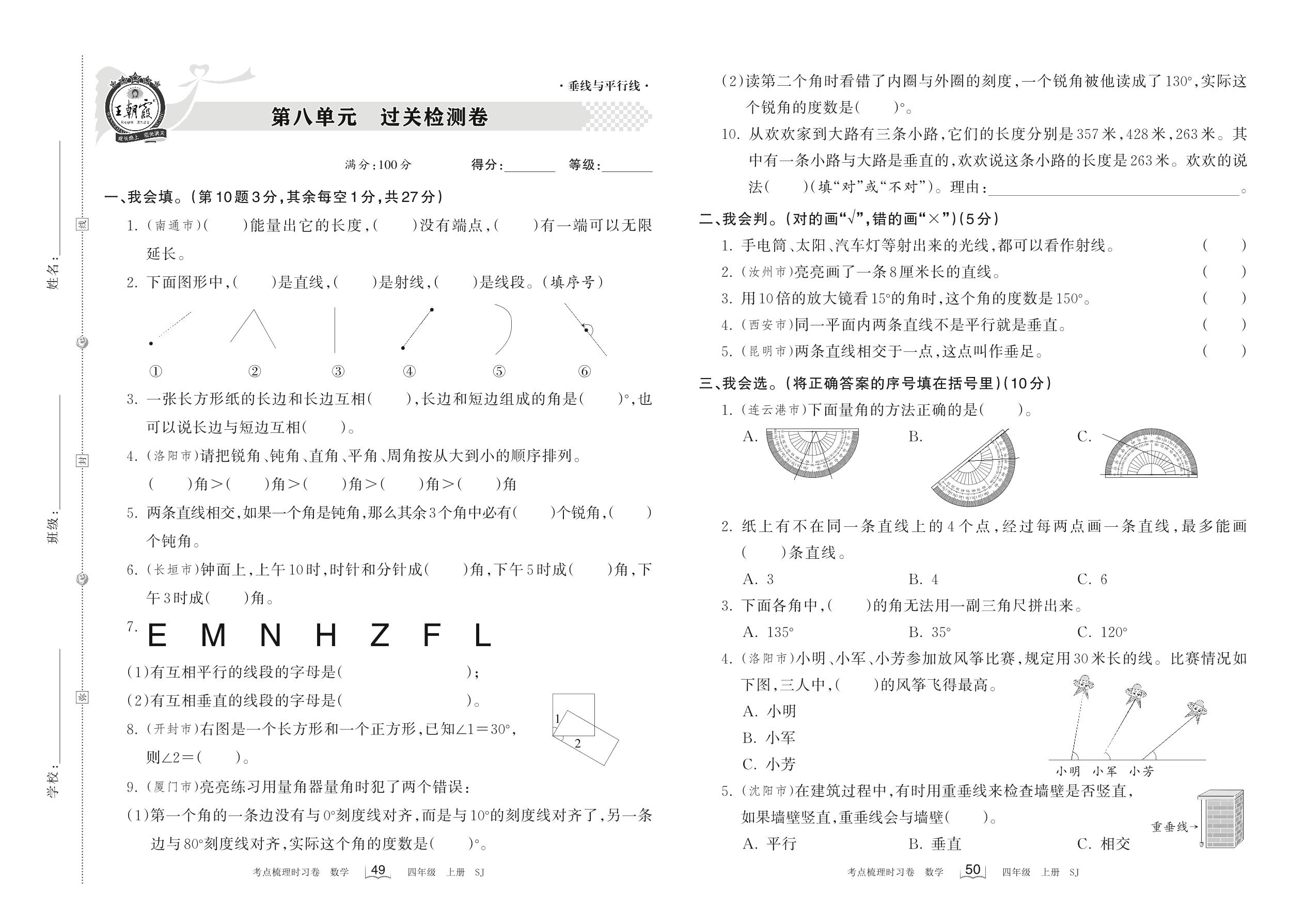 四年级数学苏教版上册单元卷