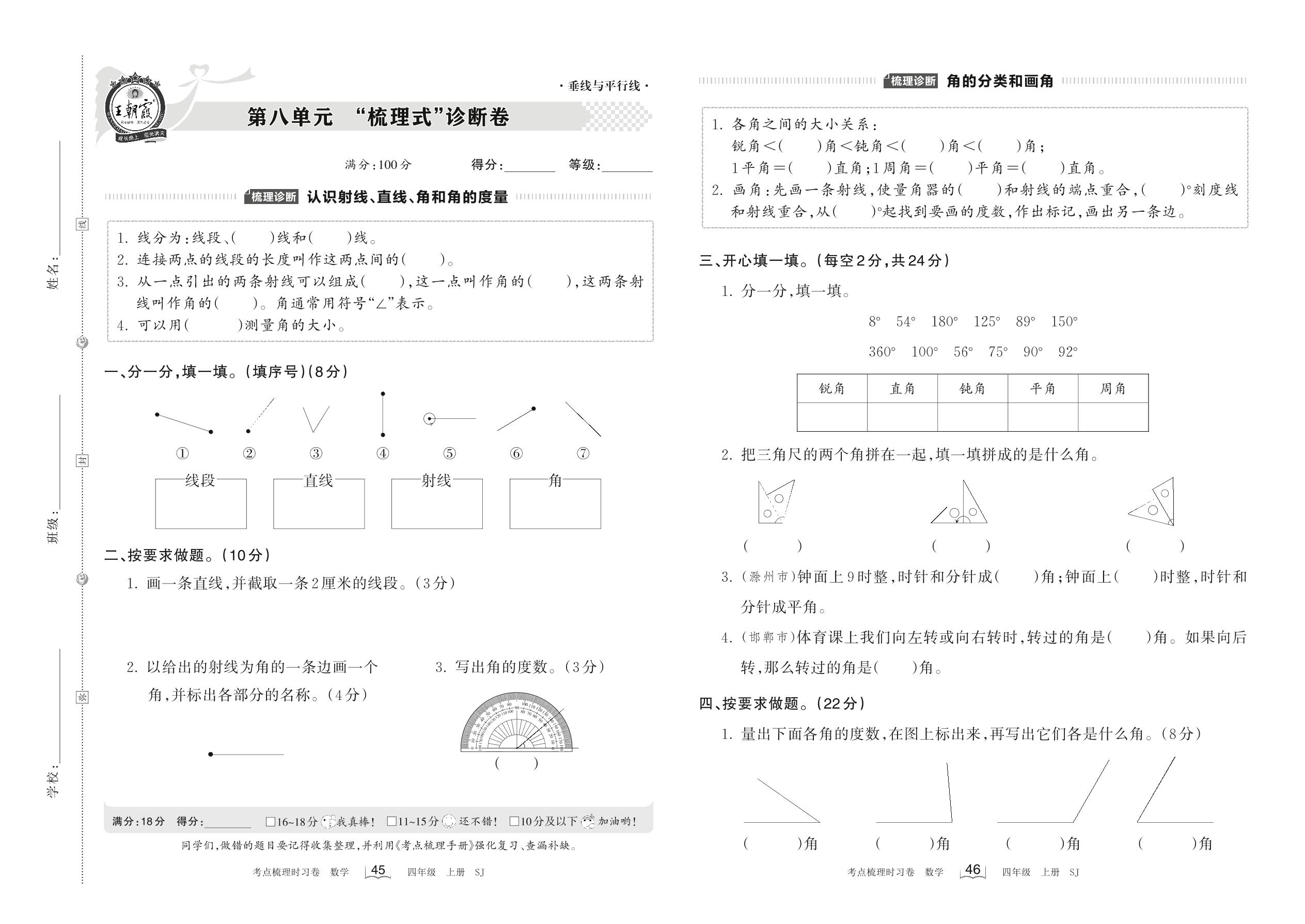 2022上册四年级数学苏教版 第八单元 “梳理式”诊断卷