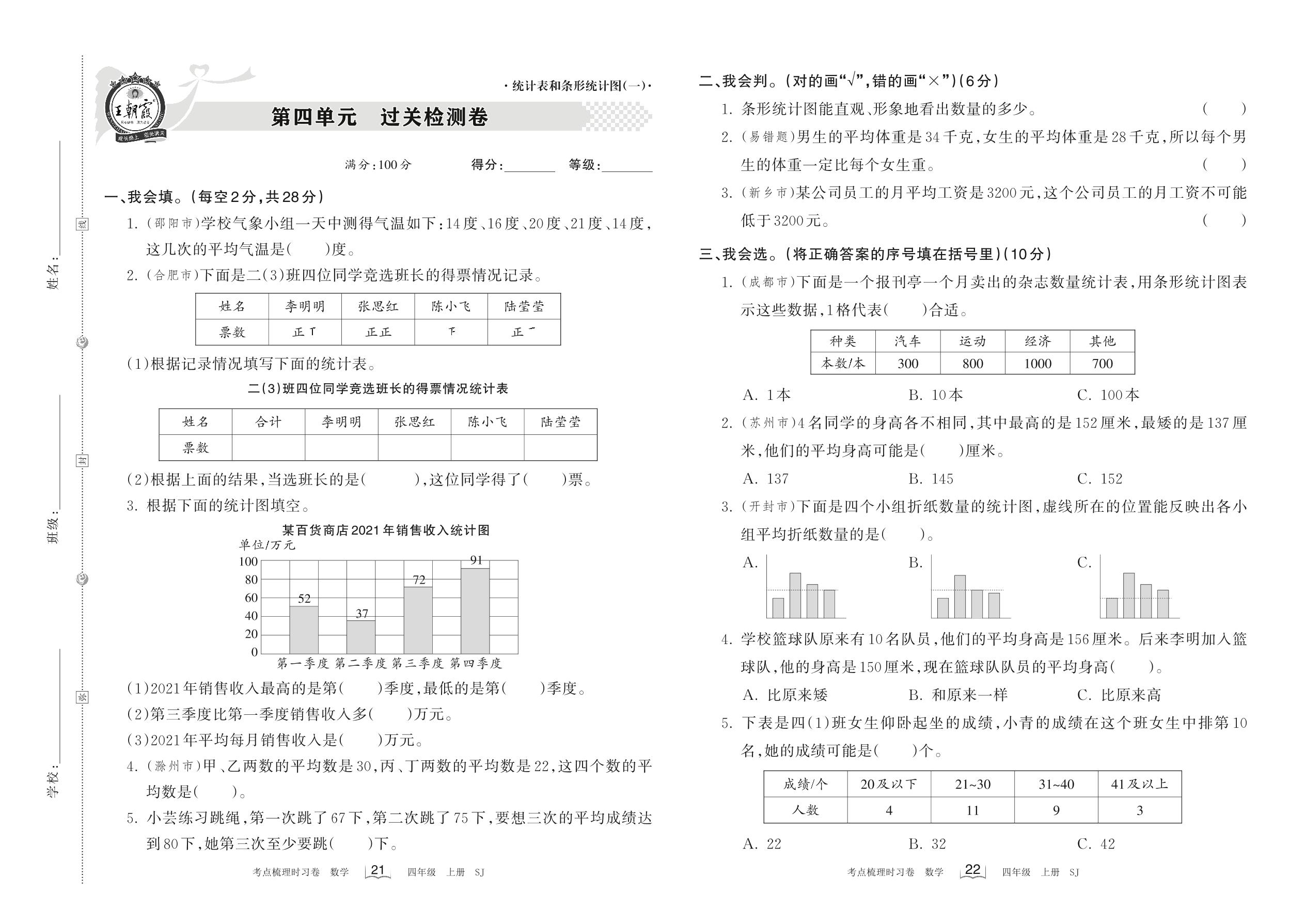 2022上册四年级数学苏教版 第四单元 过关检测卷