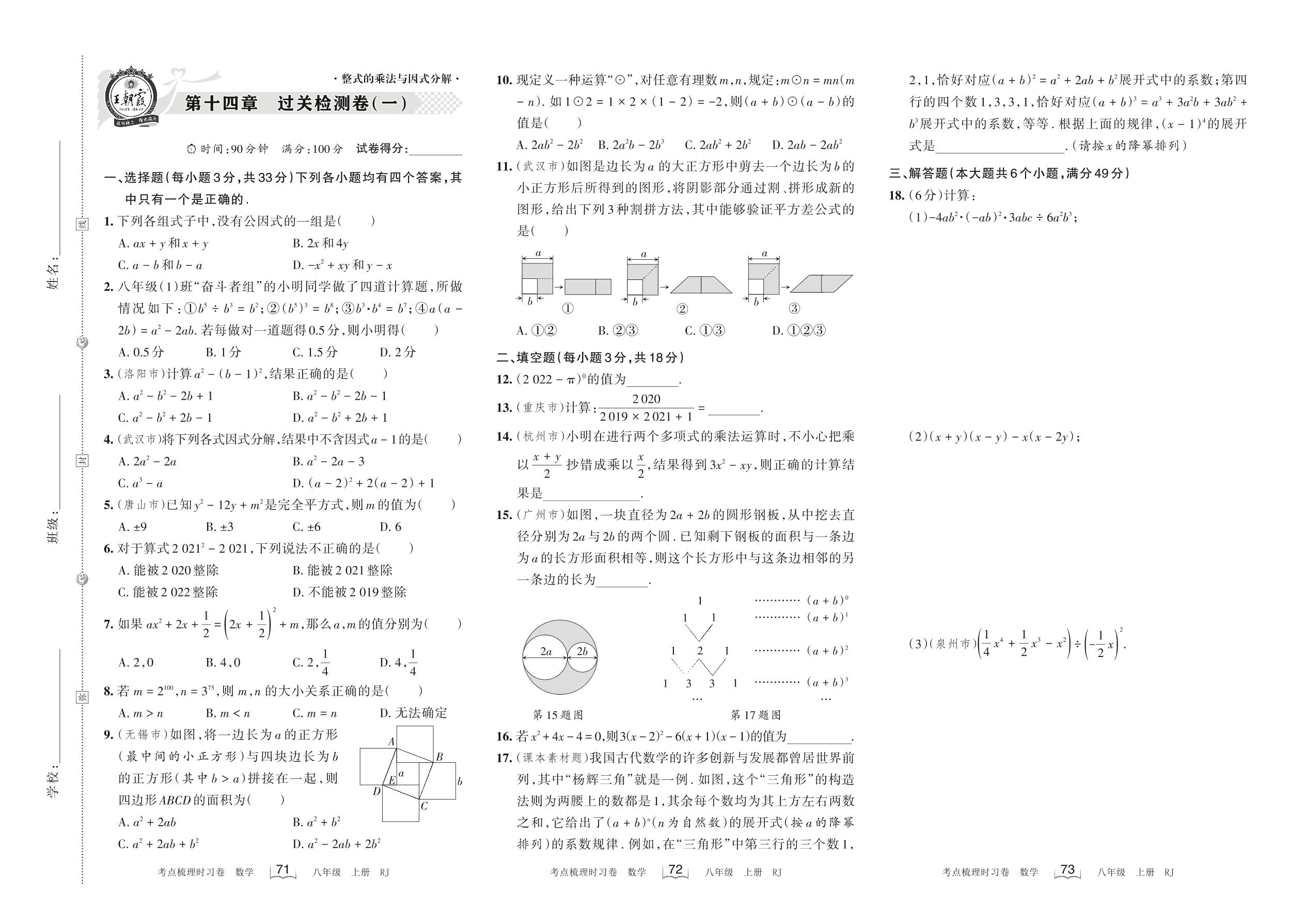 2022上册八年级数学人教版 第十四章 过关检测卷(一)