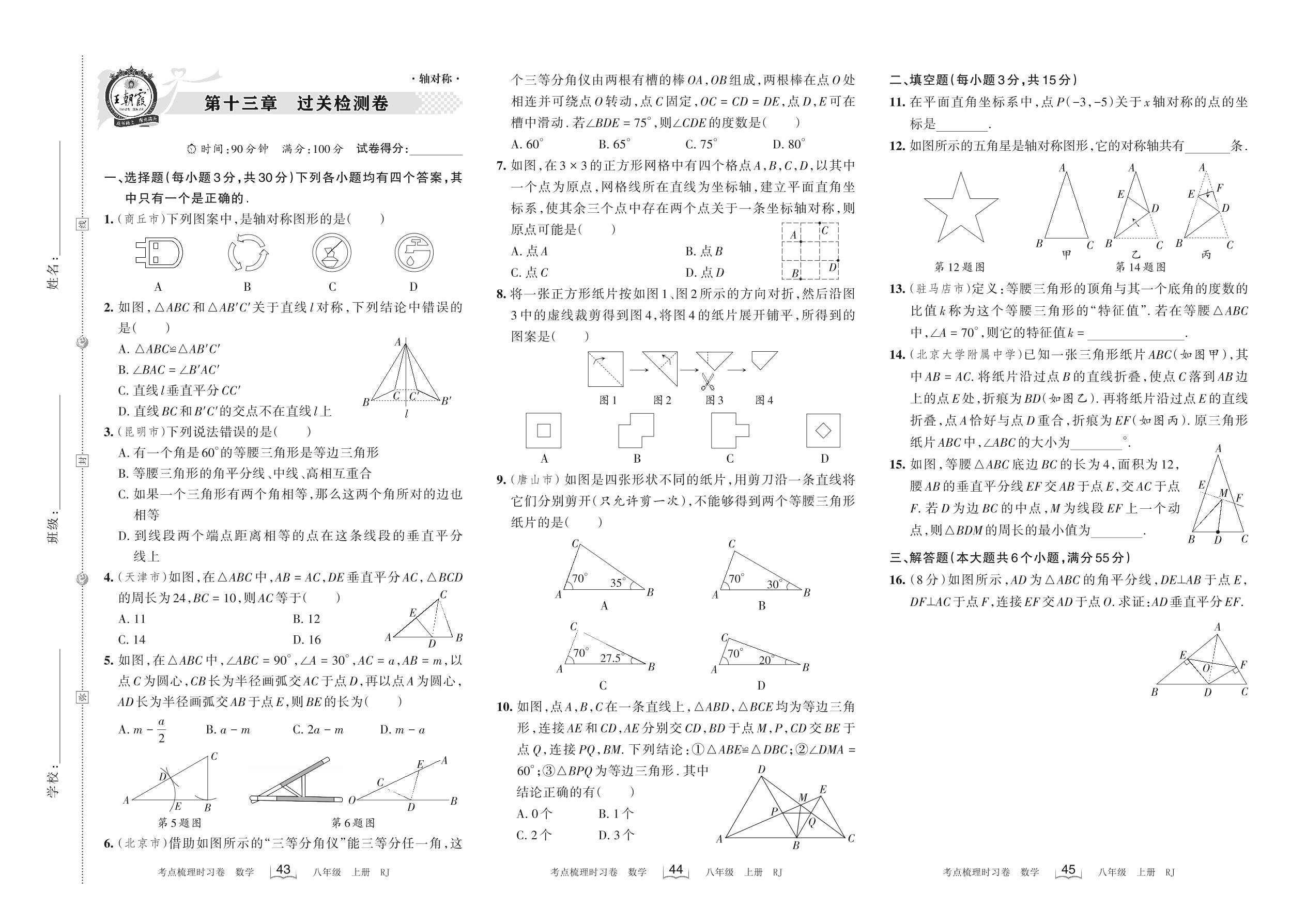 2022上册八年级数学人教版 第十三章 过关检测卷
