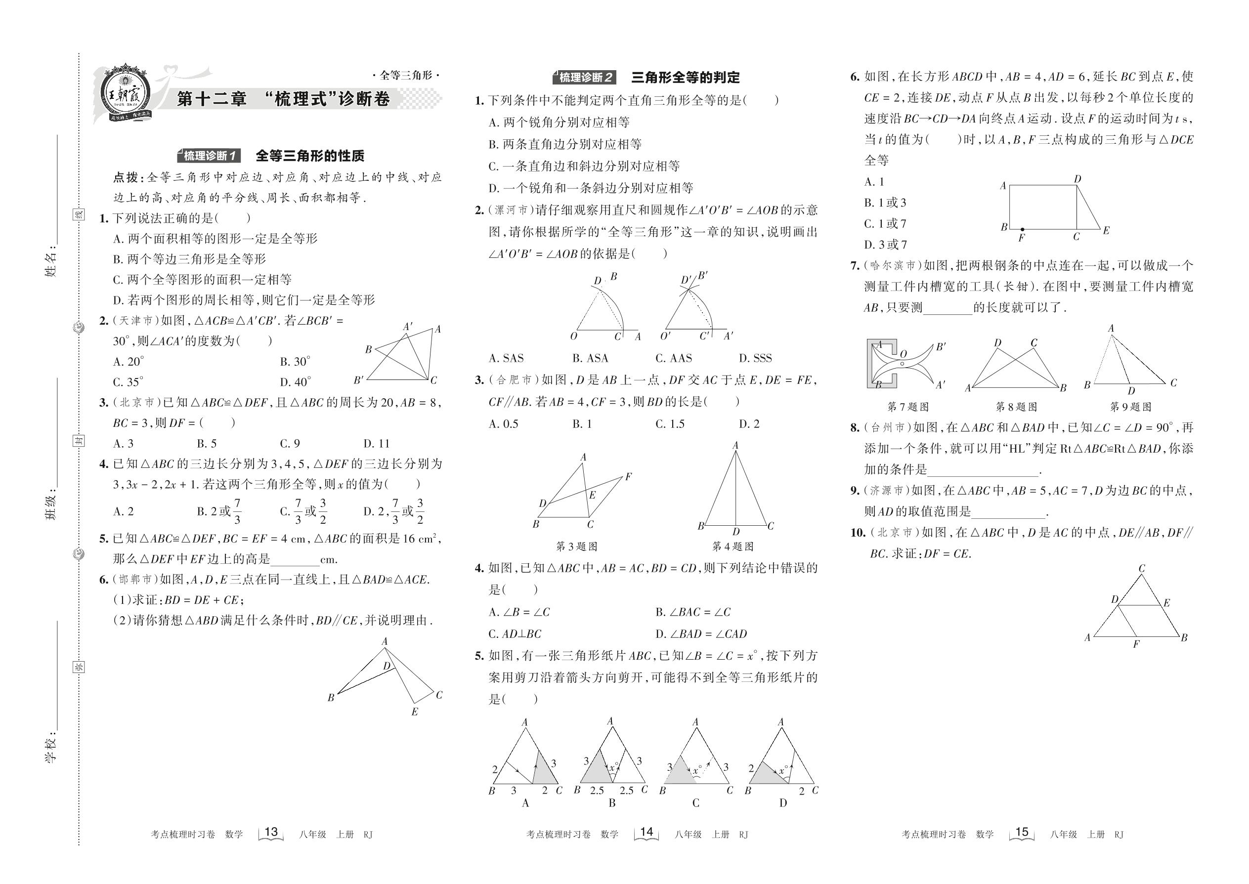 2022上册八年级数学人教版 第十二章 “梳理式”诊断卷