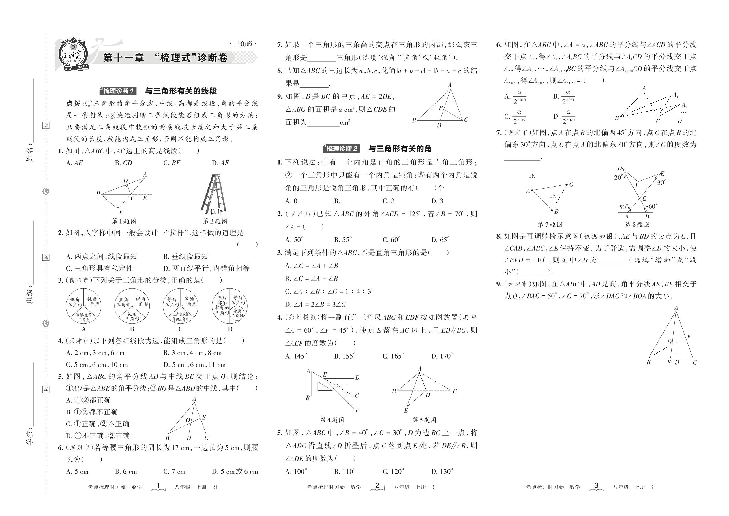 2022上册八年级数学人教版 第十一章 “梳理式”诊断卷