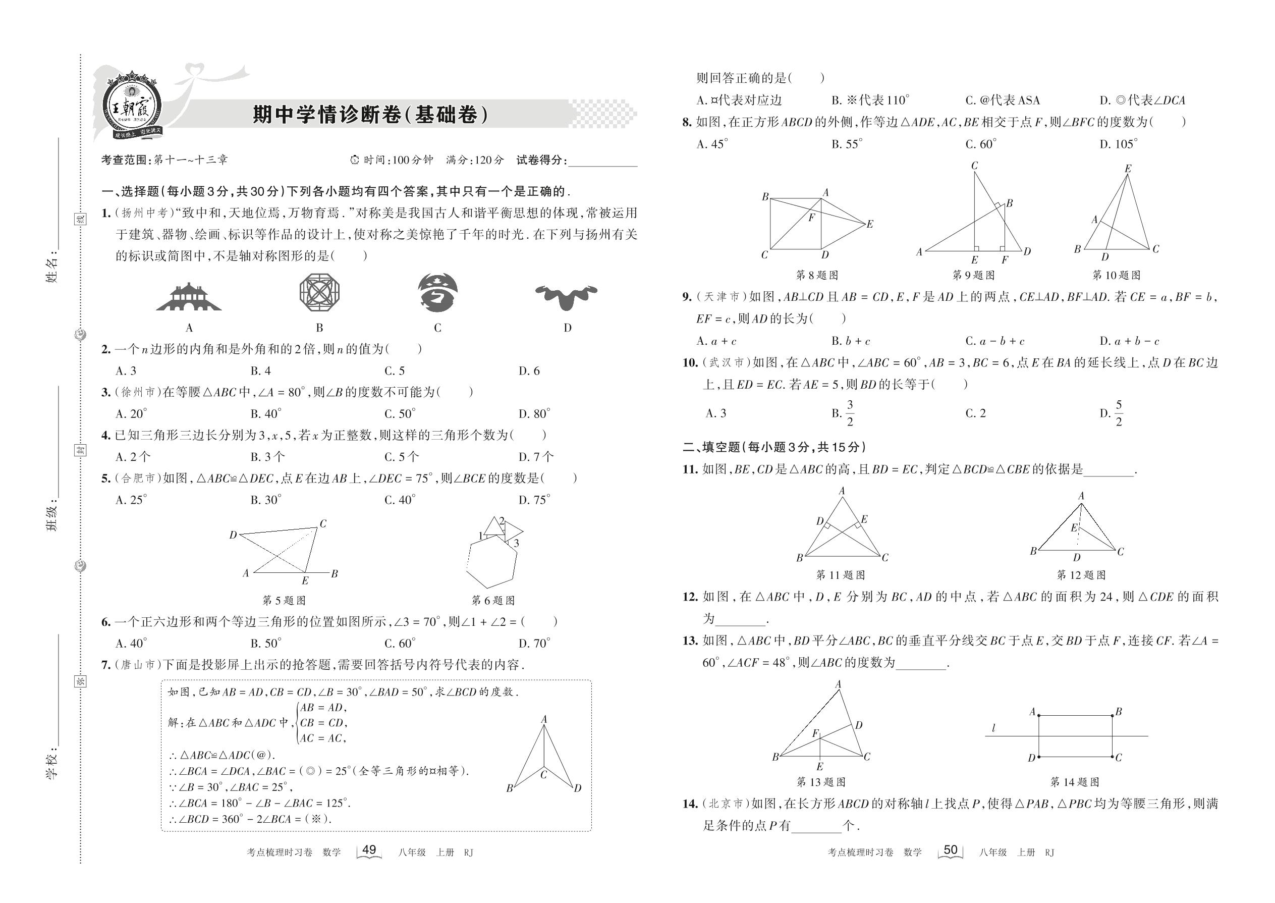 2022上册八年级数学人教版 期中学情诊断卷(基础卷)