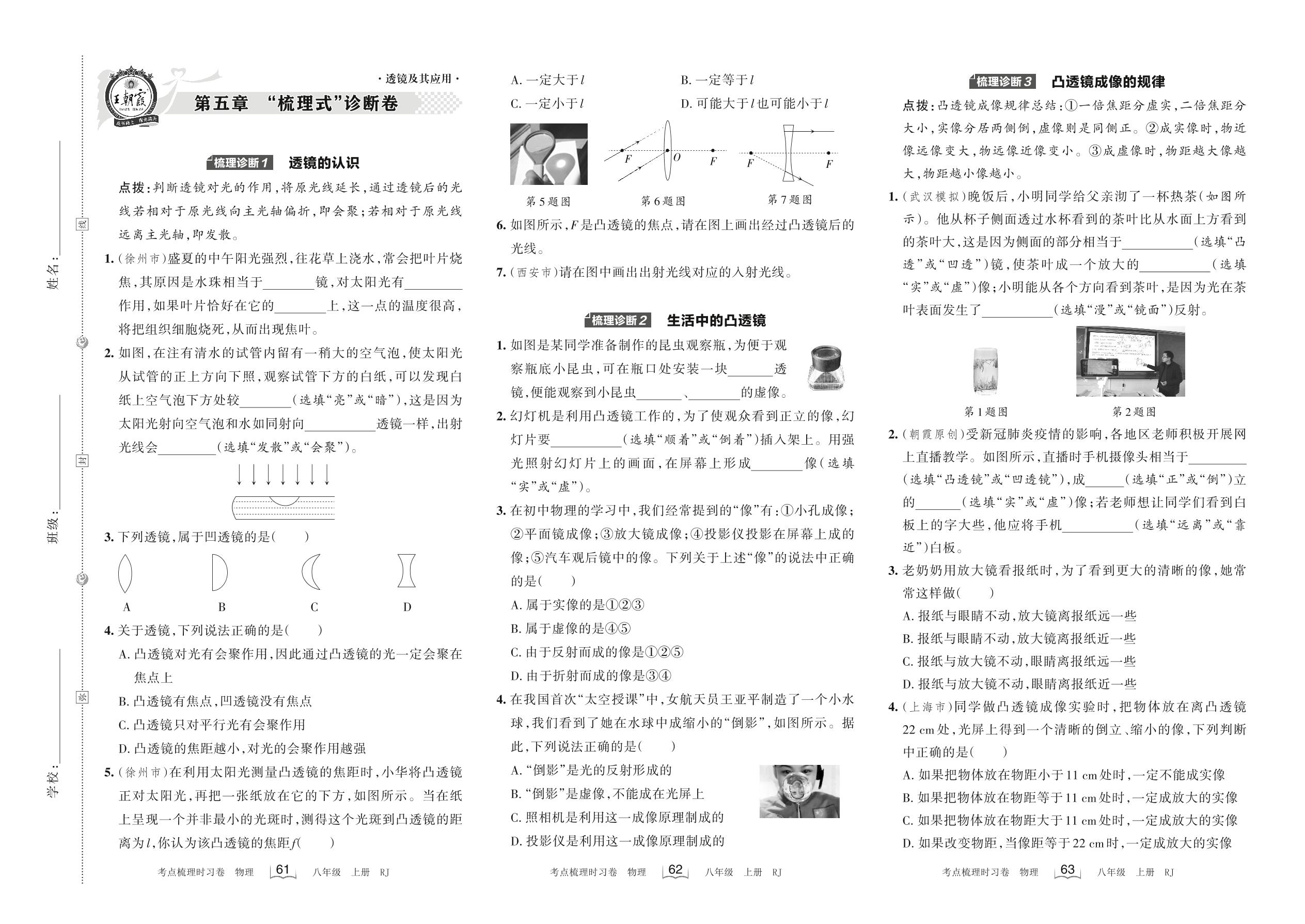 2022上册八年级物理人教版 第五章 “梳理式”诊断卷