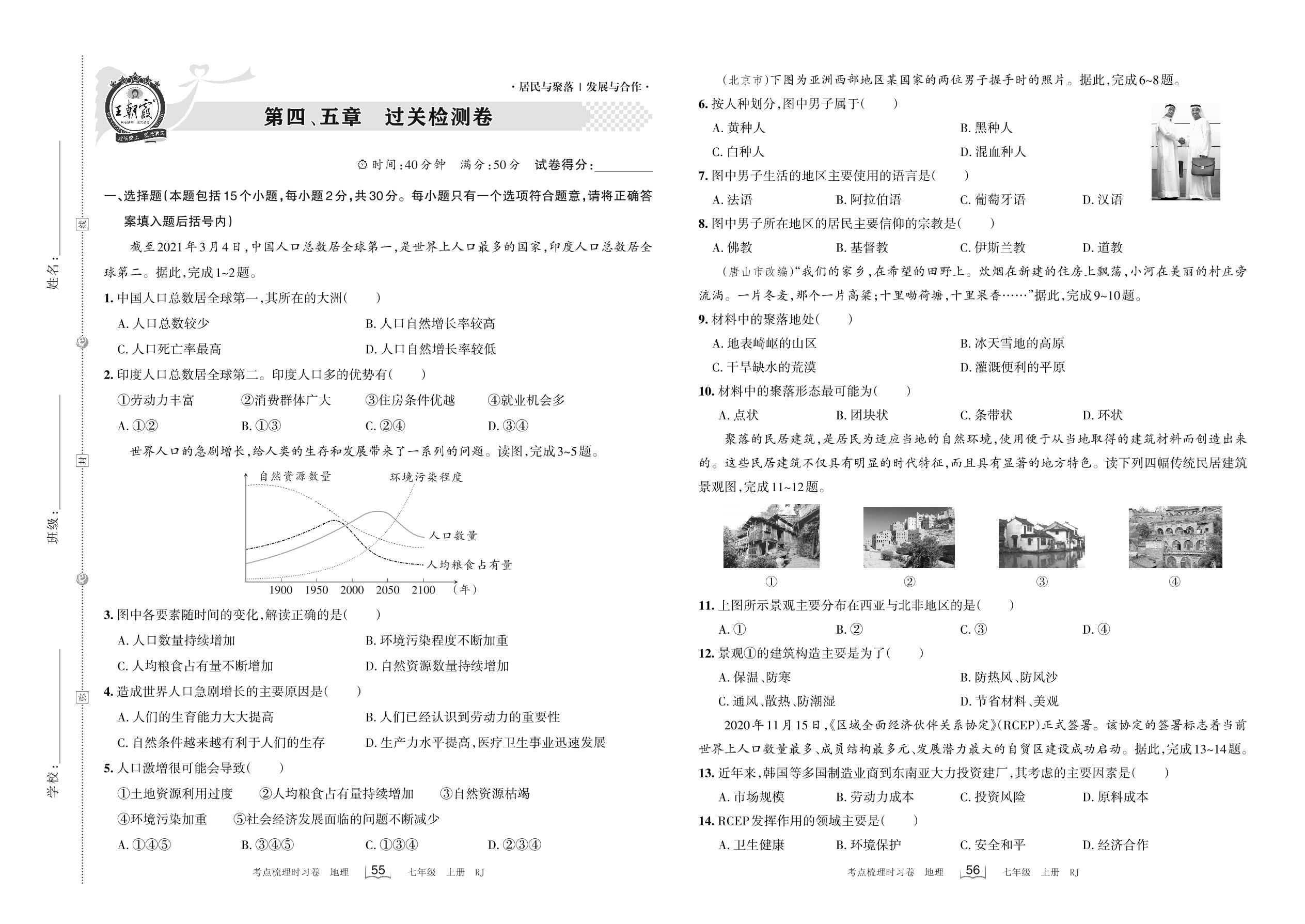 2022上册七年级地理人教版 第四、五章 过关检测卷