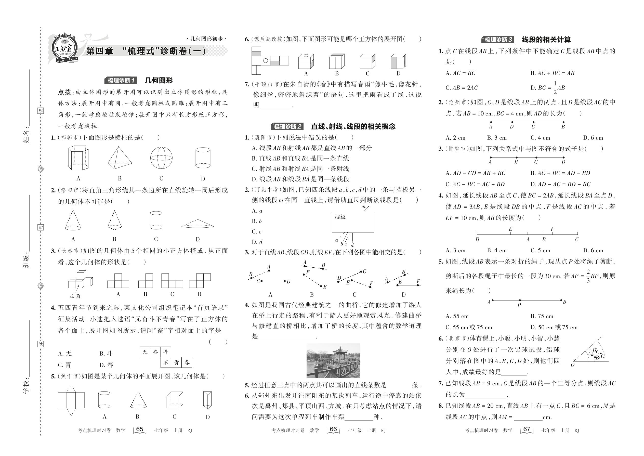 2022上册七年级数学人教版 第四章 “梳理式”诊断卷(一)
