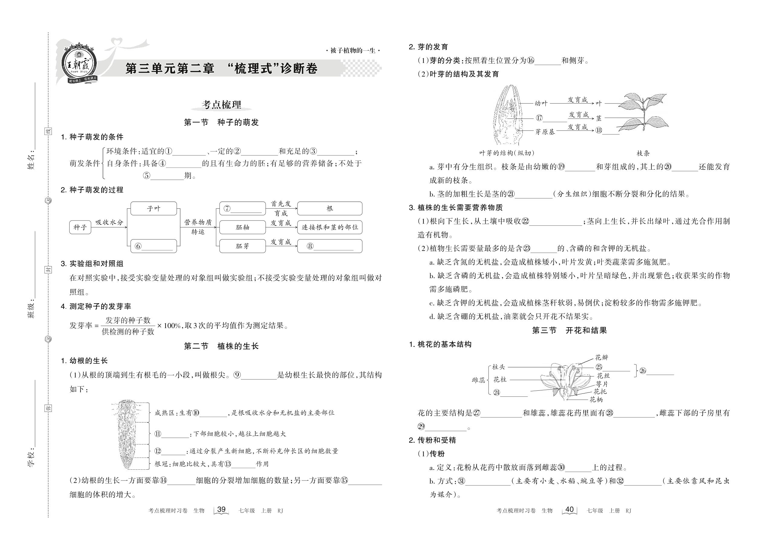 2022上册七年级生物人教版 第三单元第二章 “梳理式”诊断卷