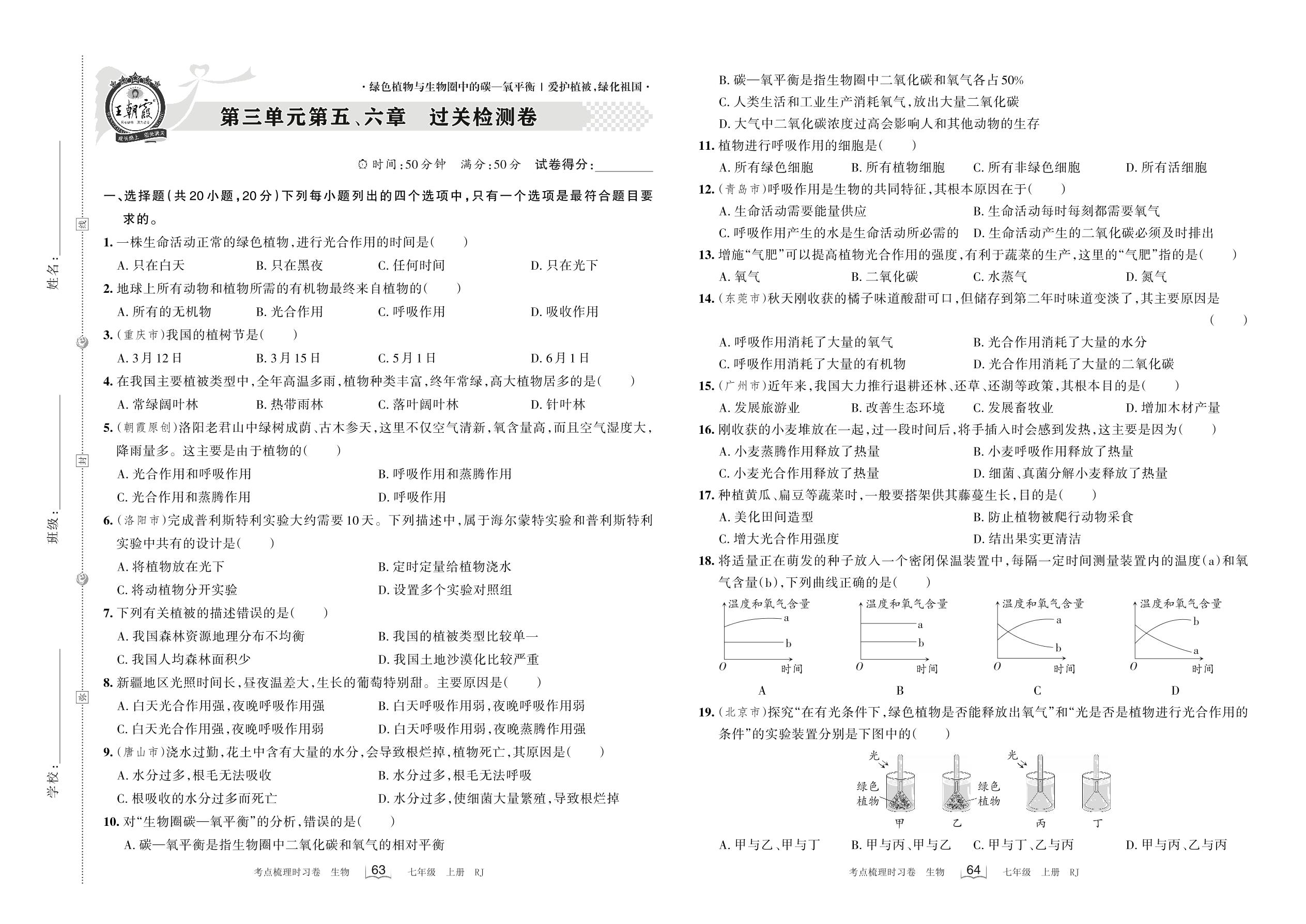 七年级生物人教版上册单元卷