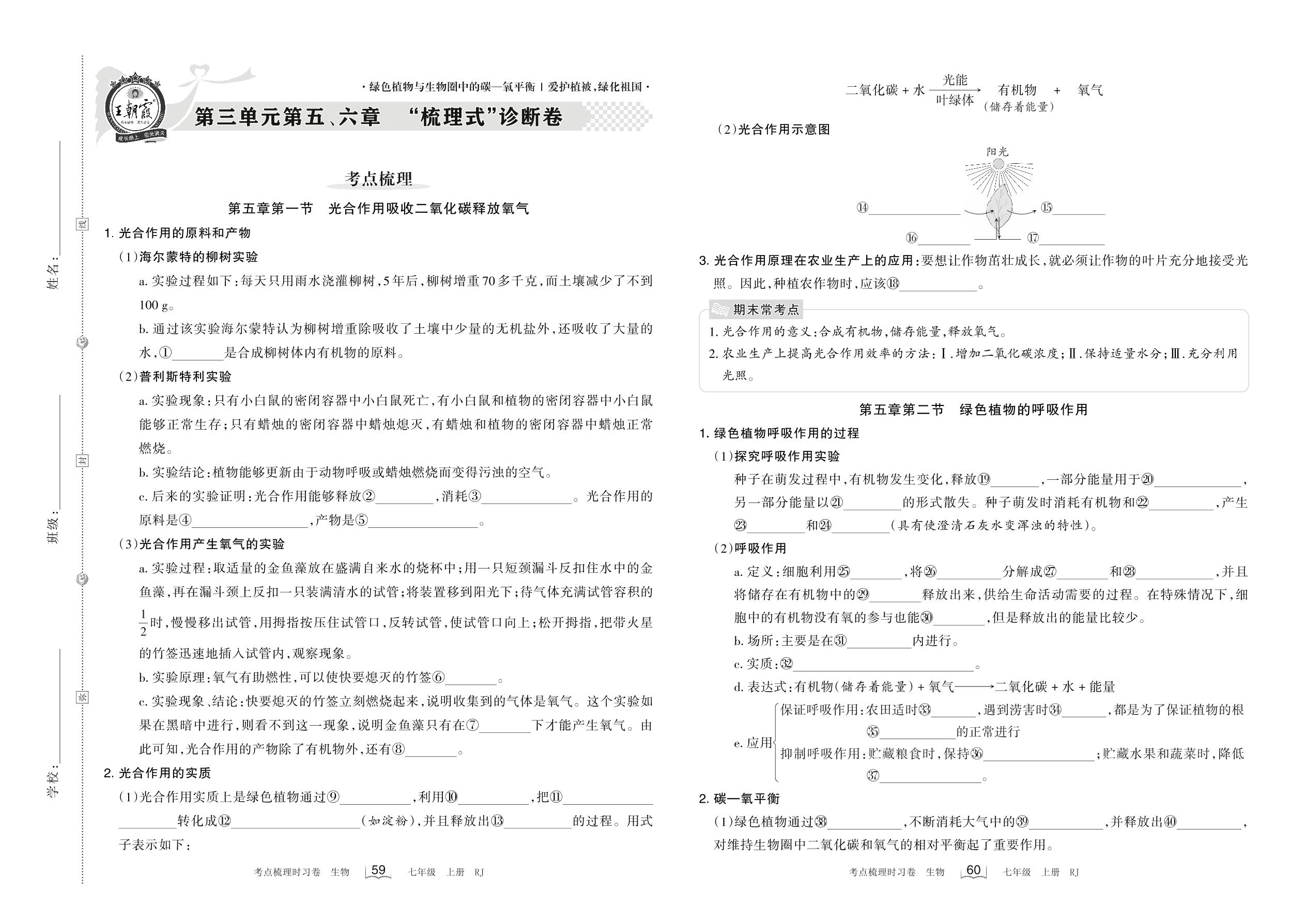 2022上册七年级生物人教版 第三单元第五、六章 “梳理式”诊断卷