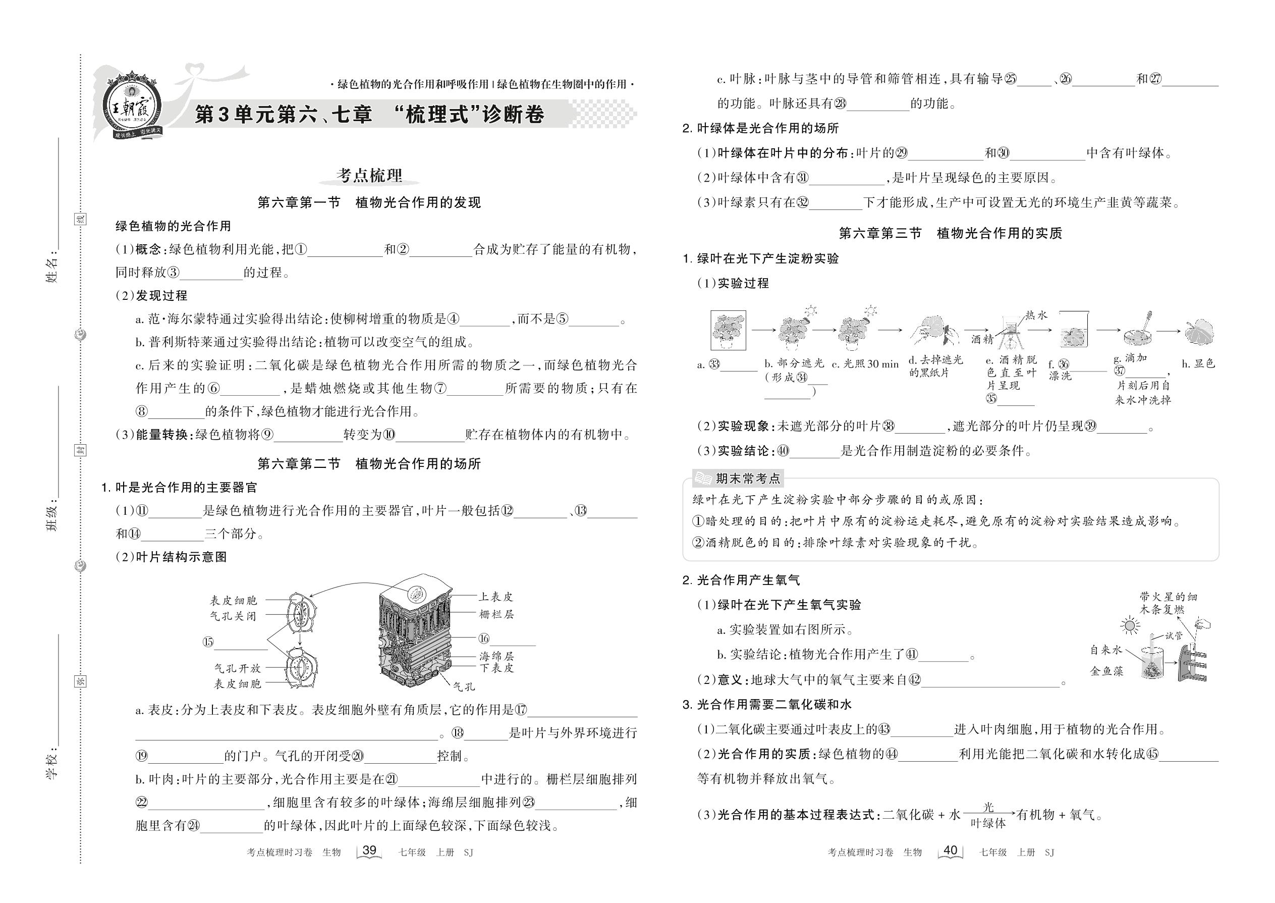 2022上册七年级生物苏教版 第3单元第六、七章 “梳理式”诊断卷