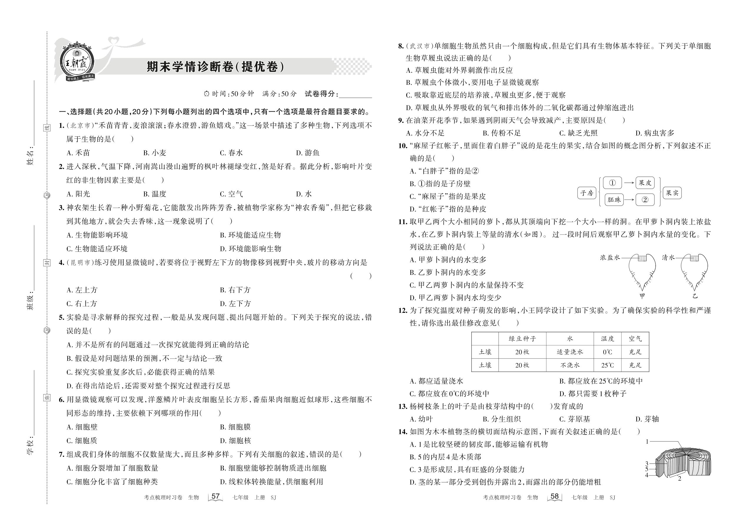 2022上册七年级生物苏教版 期末学情诊断卷(提优卷)