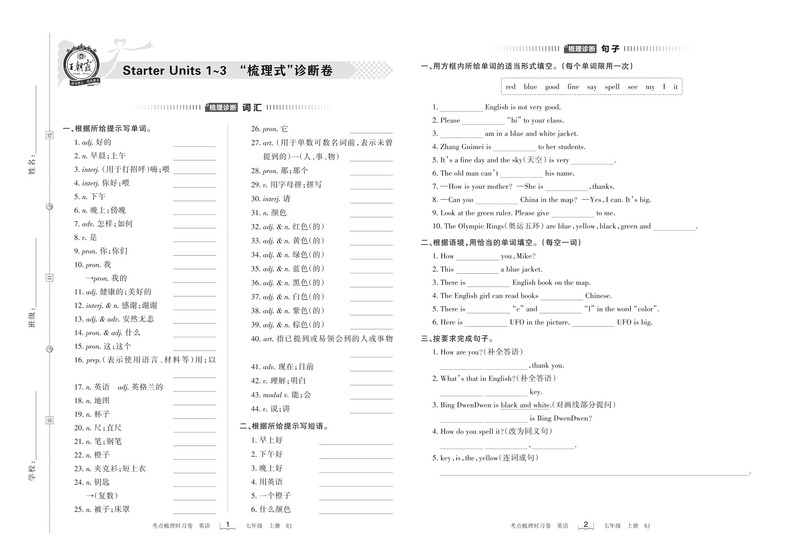 2022上册七年级英语人教版 Starter Units 1~3 “梳理式”诊断卷_R220818090558785