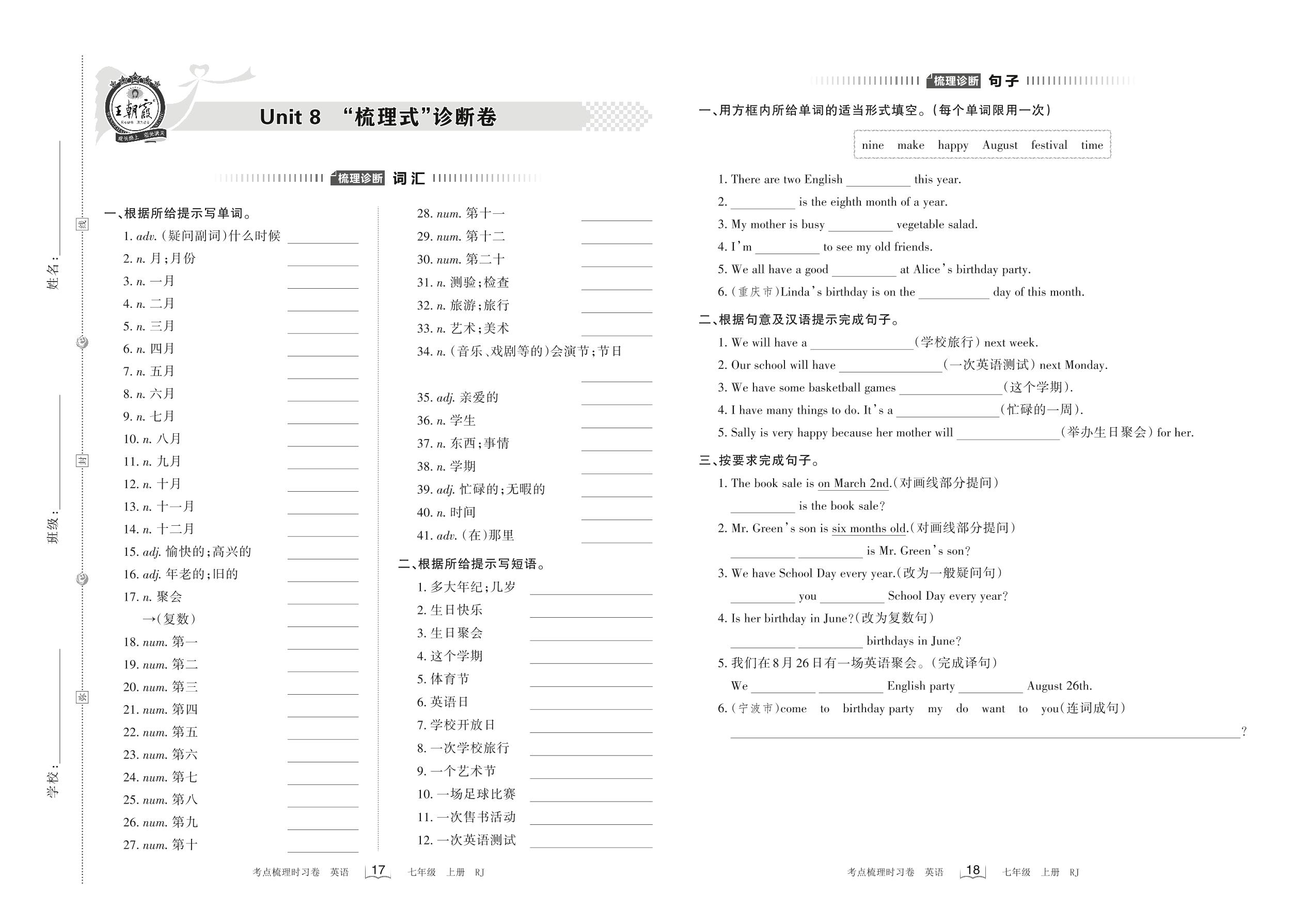 2022上册七年级英语人教版 Unit 8 “梳理式”诊断卷_R220818090558706