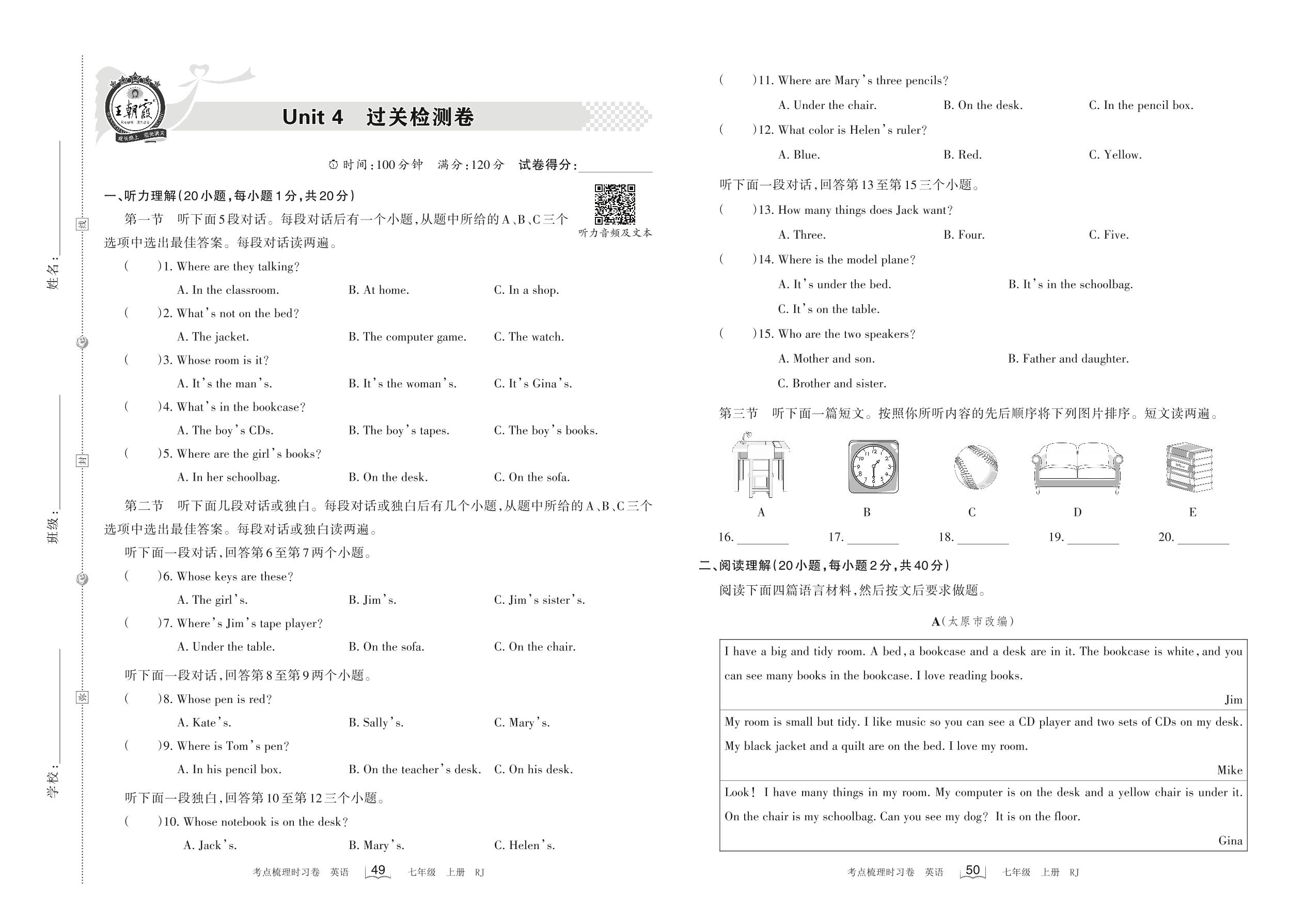 七年级英语人教版上册单元卷