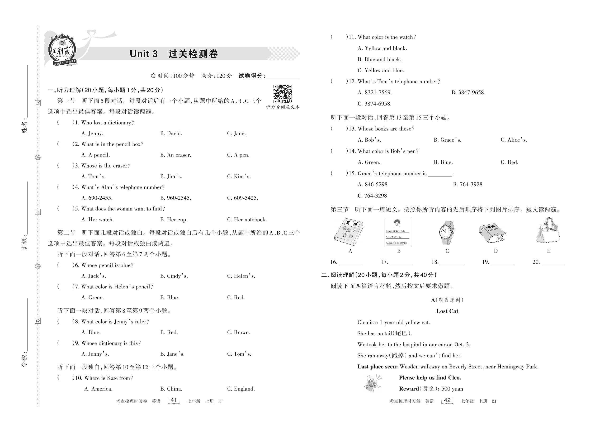 2022上册七年级英语人教版 Unit 3 过关检测卷_R220818090600533