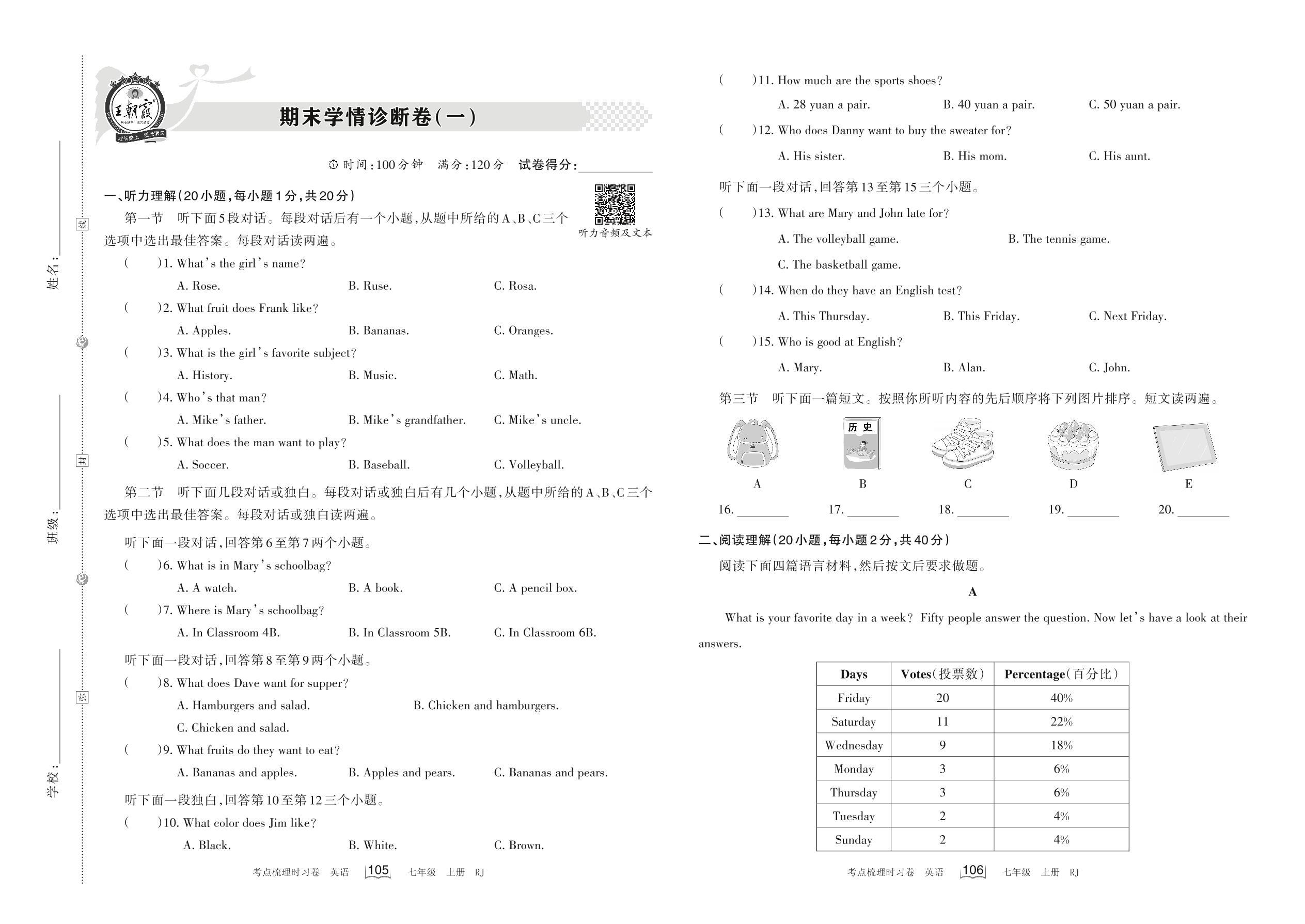 2022上册七年级英语人教版 期末学情诊断卷(一)_R220818090600146