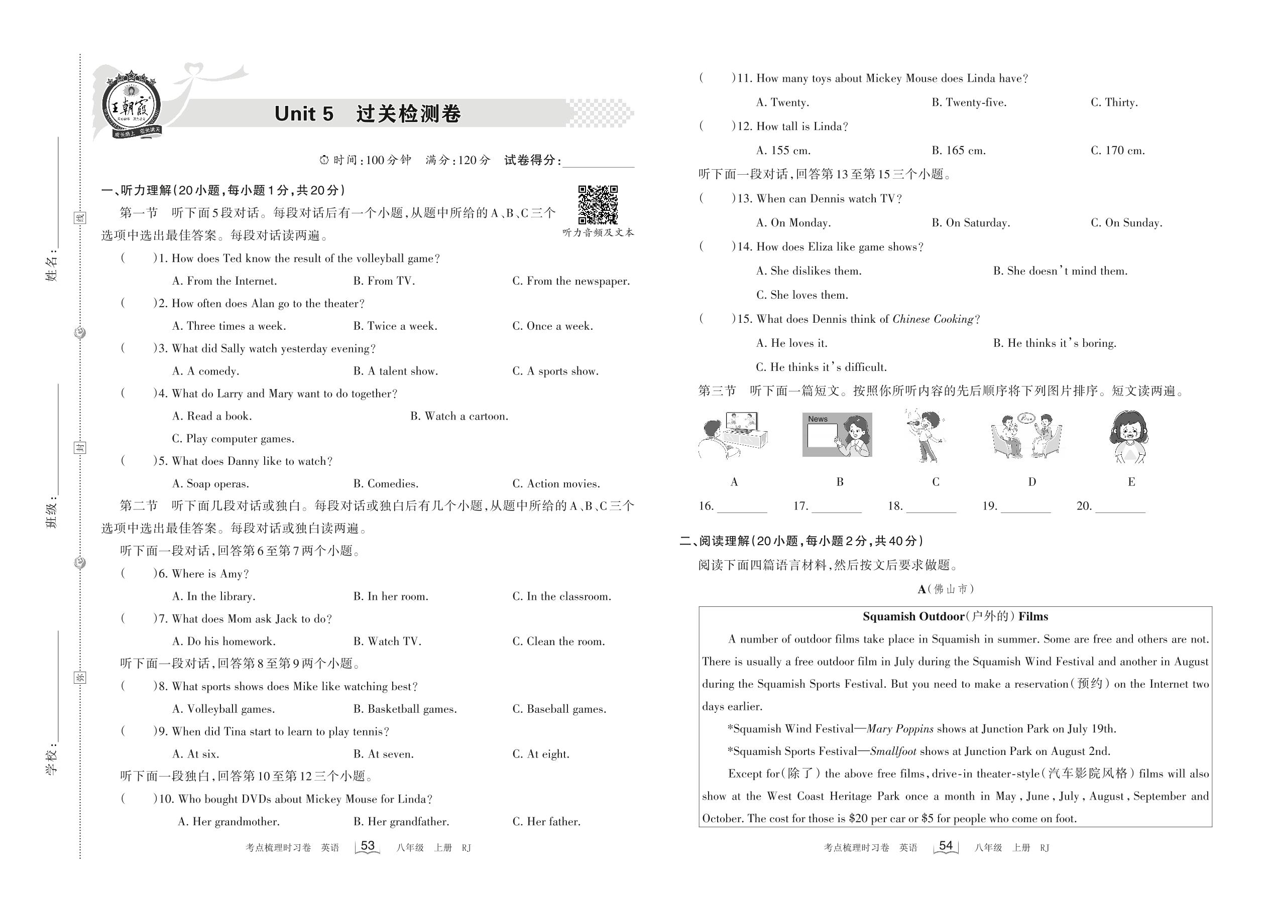 2022上册八年级英语人教版 Unit 5 过关检测卷_R220818091638586