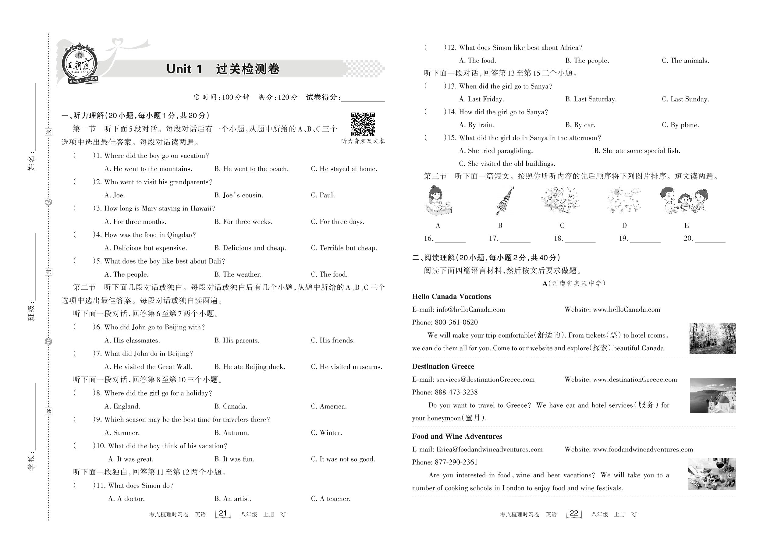 2022上册八年级英语人教版 Unit 1 过关检测卷_R220818091638078
