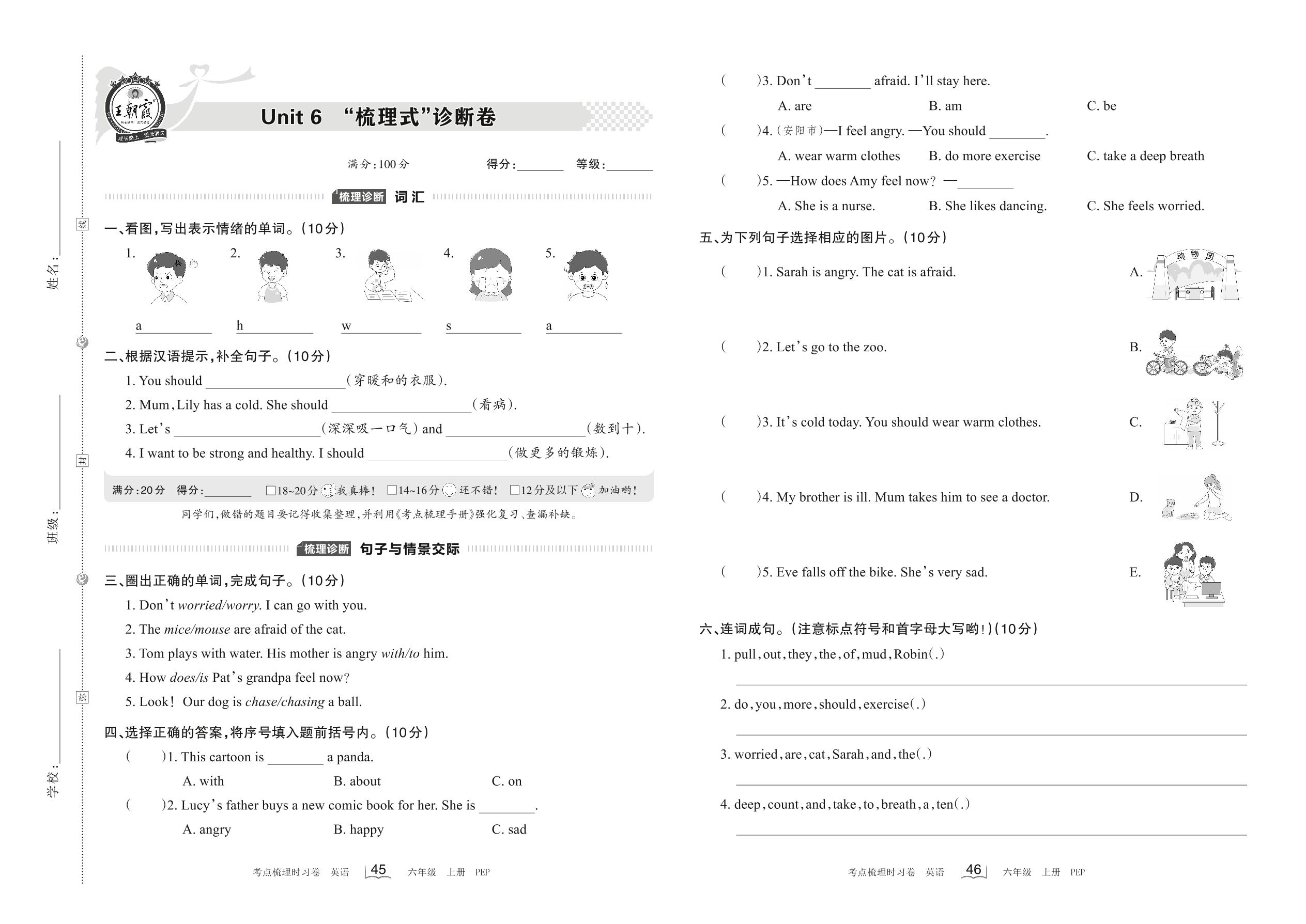 2022上册六年级英语人教PEP版 Unit 6 “梳理式”诊断卷