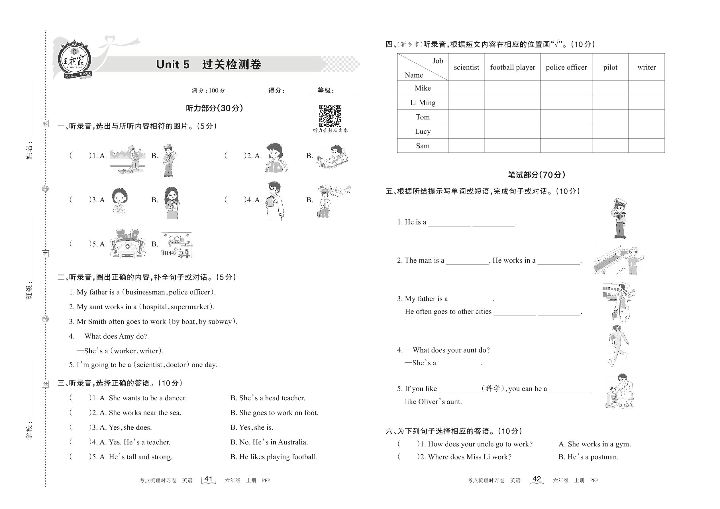 2022上册六年级英语人教PEP版 Unit 5 过关检测卷