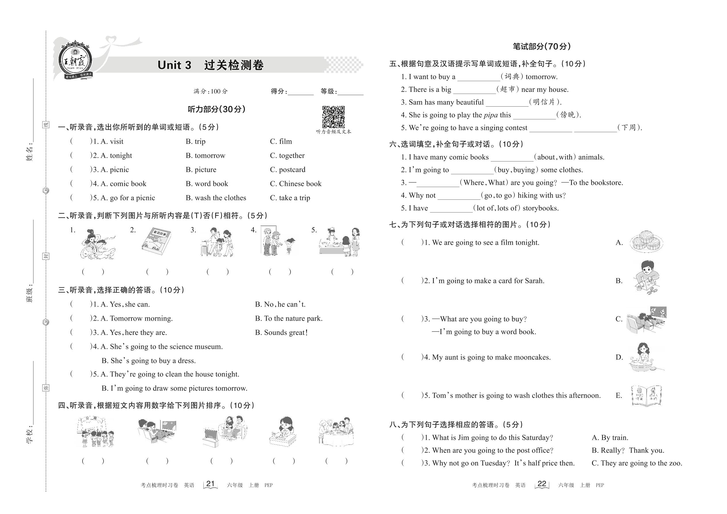六年级英语人教PEP版(三起始)上册单元卷