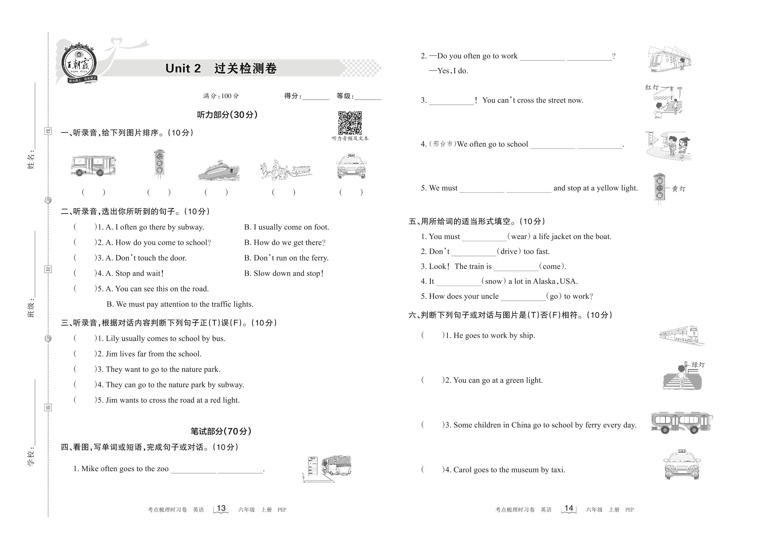 六年级英语人教PEP版(三起始)上册单元卷