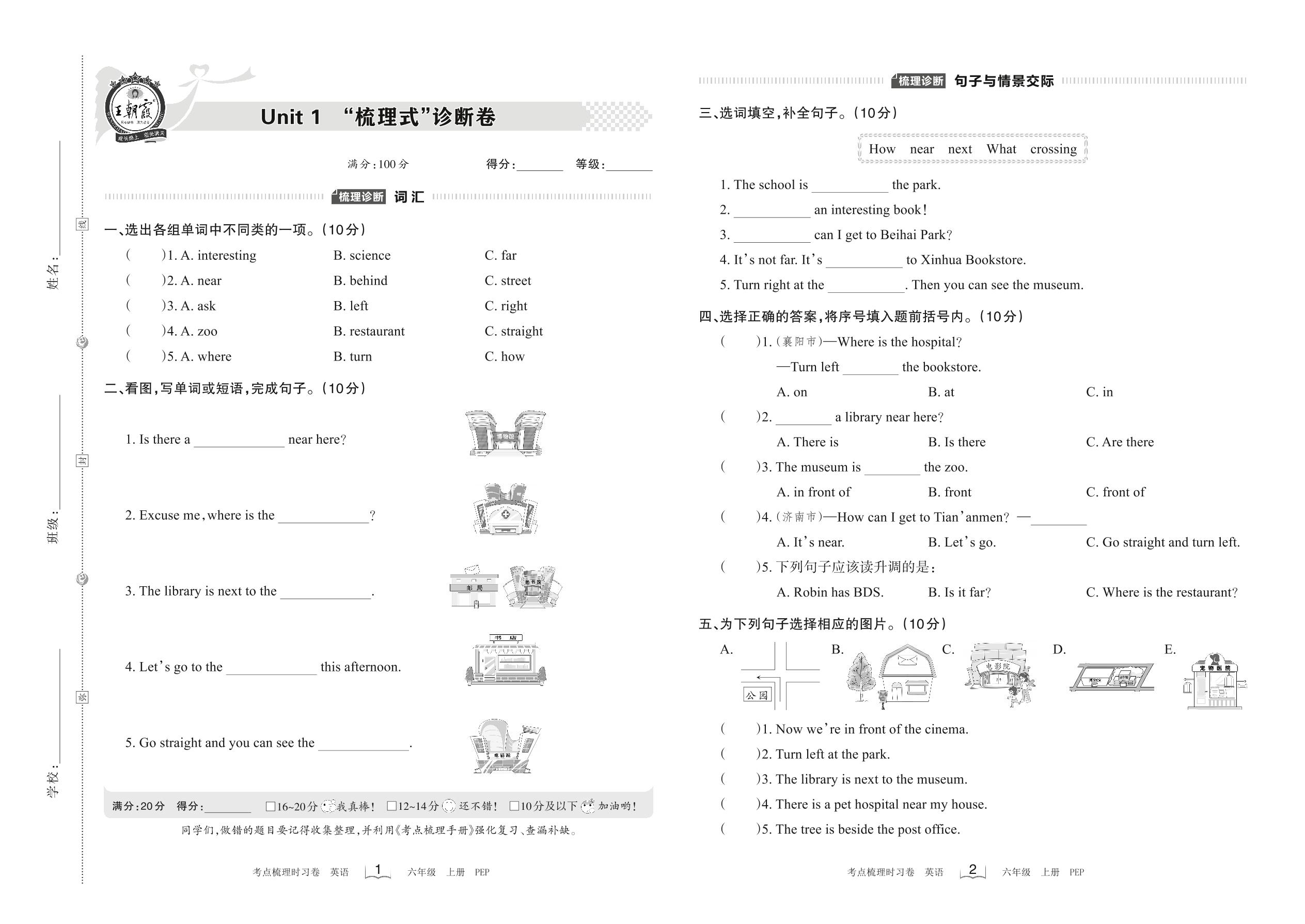 2022上册六年级英语人教PEP版 Unit 1 “梳理式”诊断卷