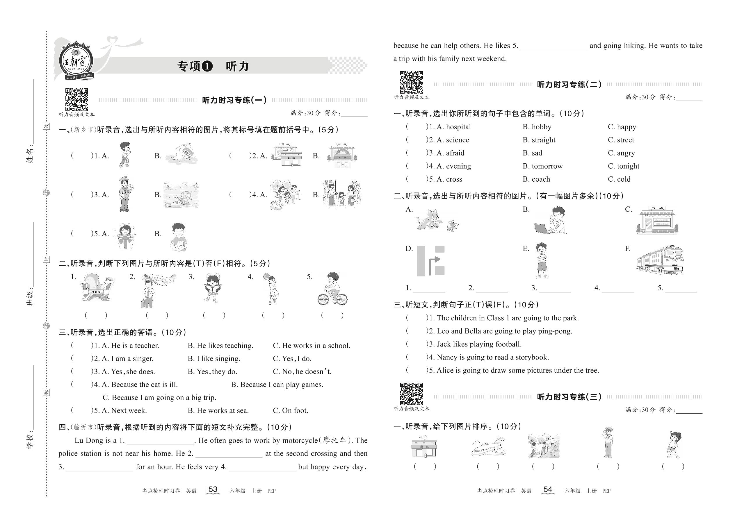 2022上册六年级英语人教PEP版 专项1 听力