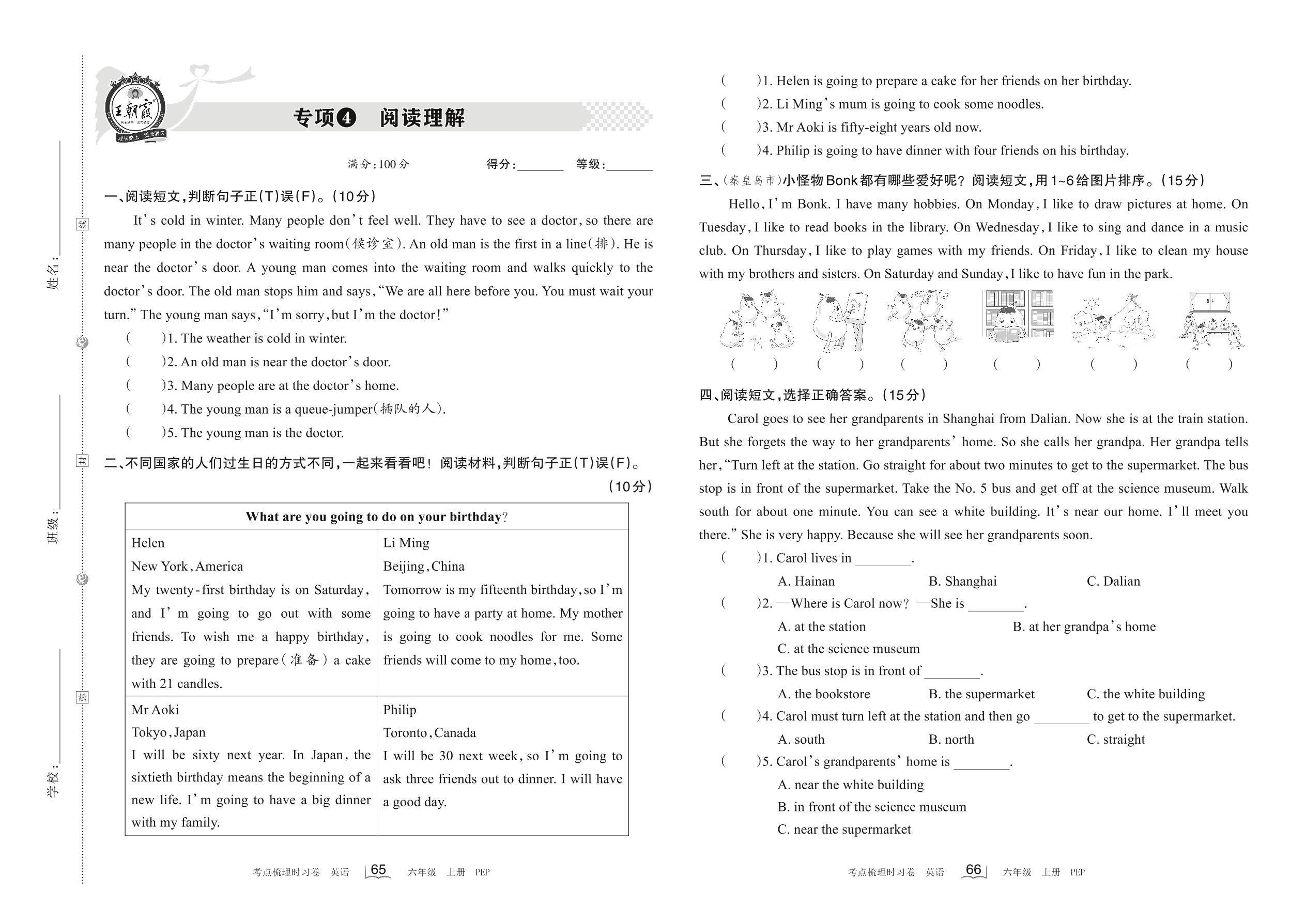 2022上册六年级英语人教PEP版 专项4 阅读理解