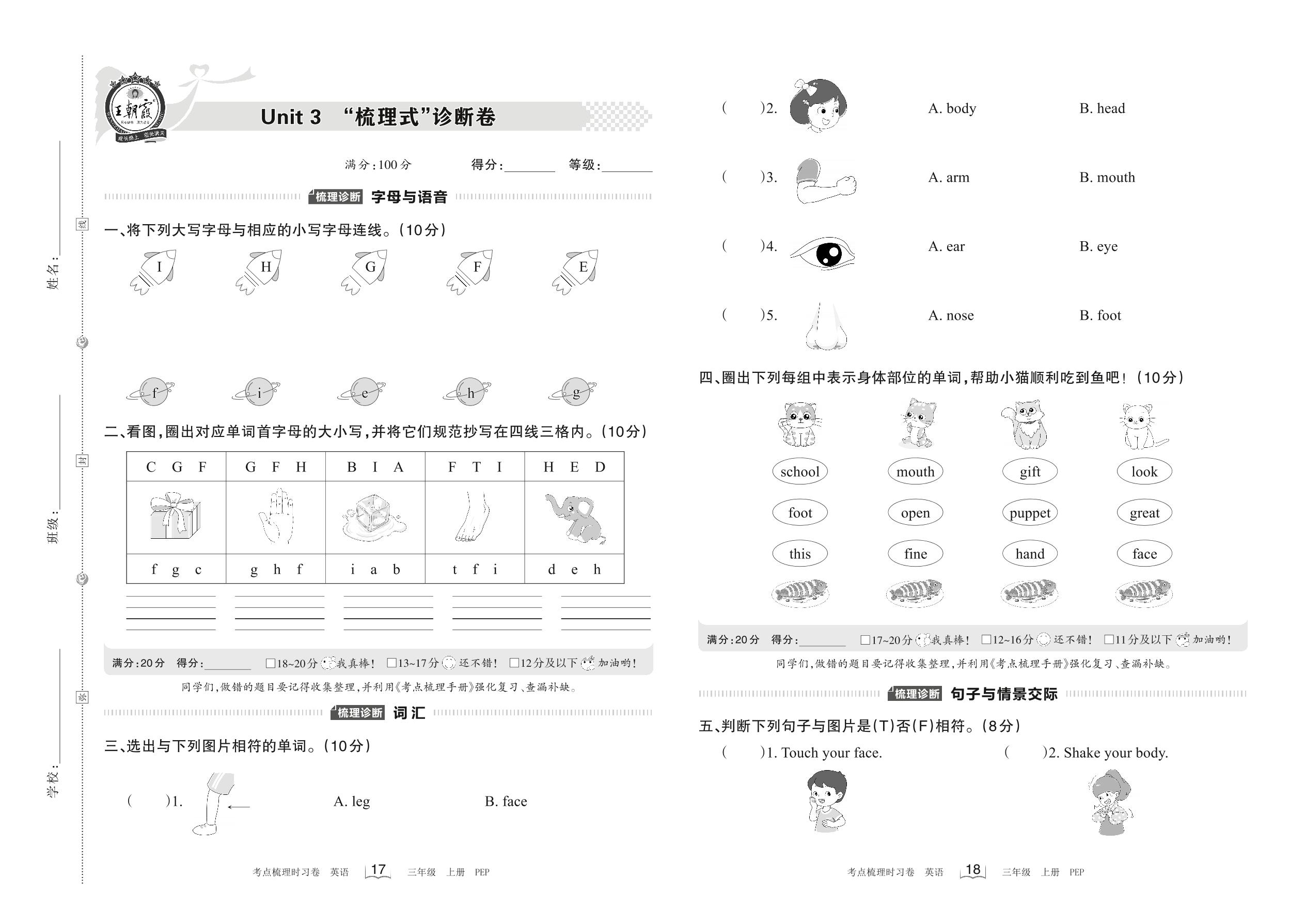 三年级英语人教PEP版(三起始)上册单元卷