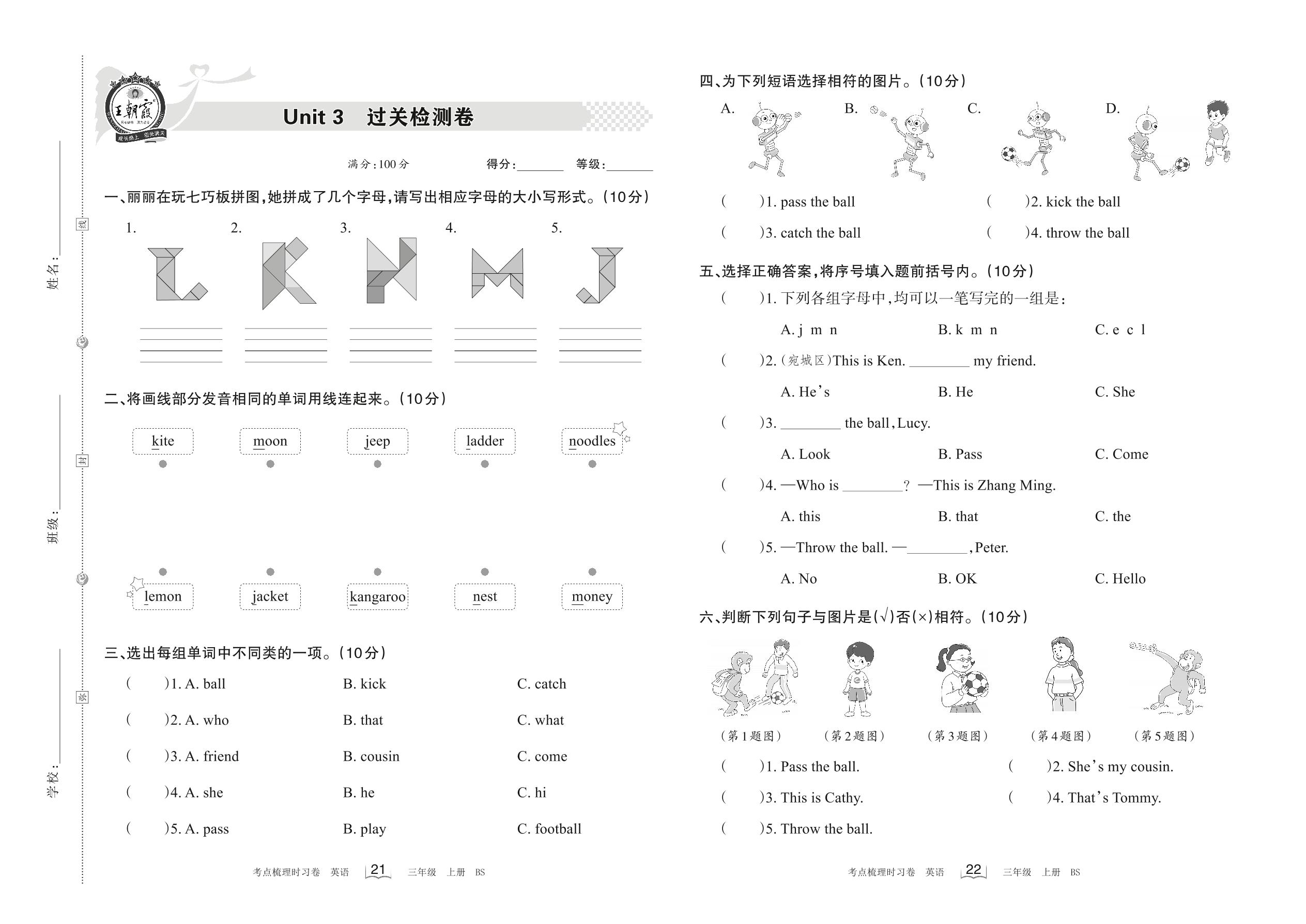 2022上册三年级英语北师版 Unit 3 过关检测卷