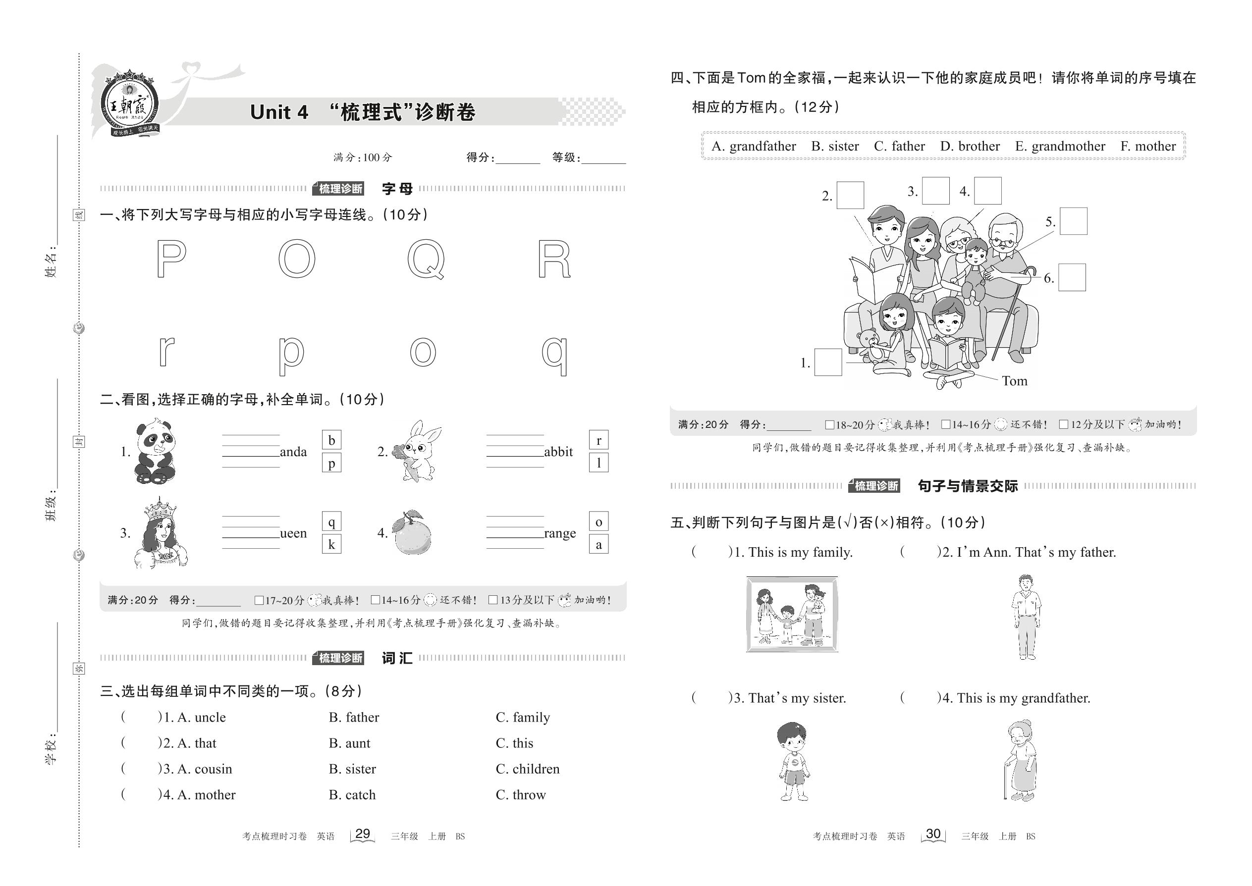 2022上册三年级英语北师版 Unit 4 “梳理式”诊断卷