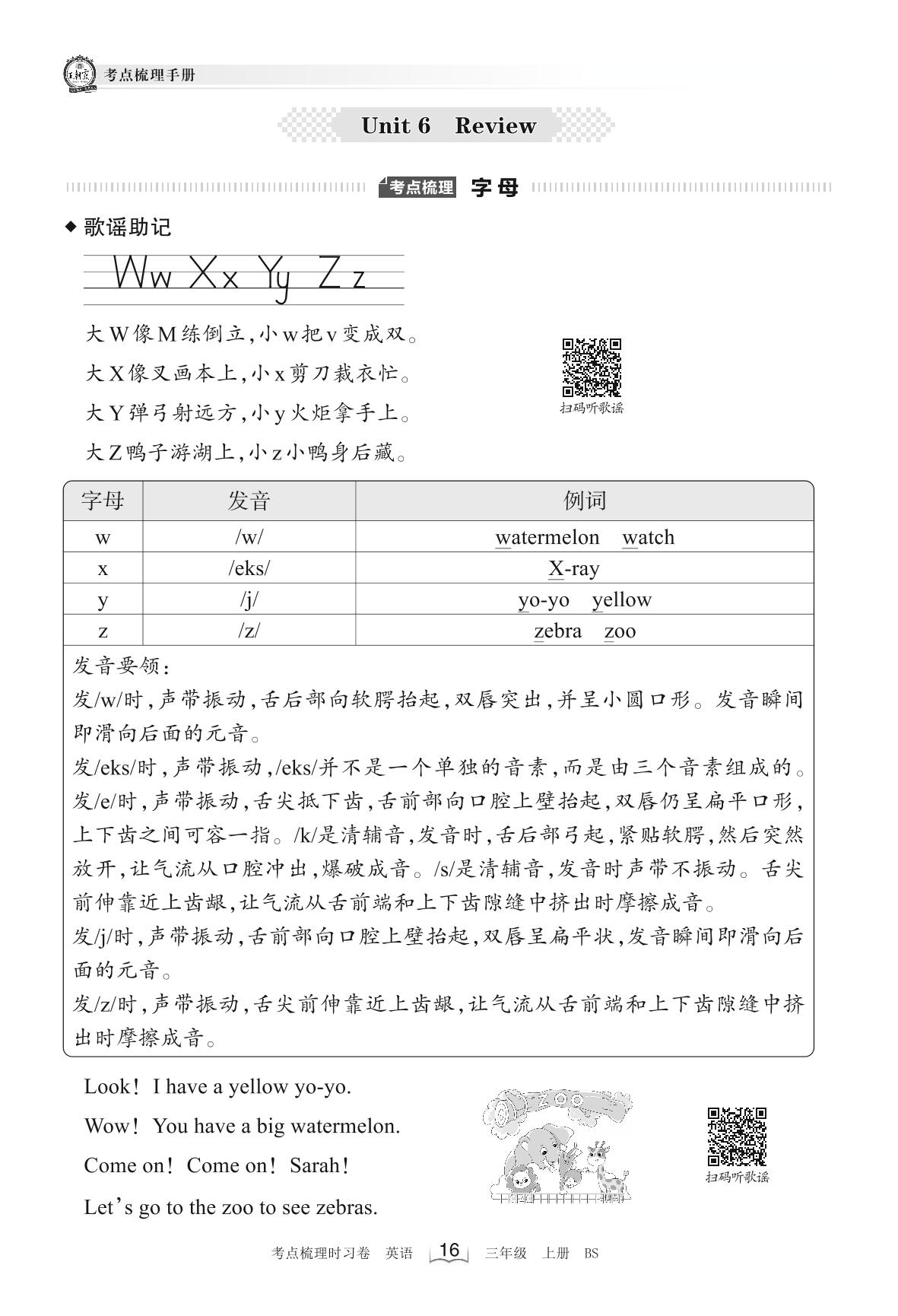 2022上册三年级英语北师版 考点梳理手册——Unit 6 Review