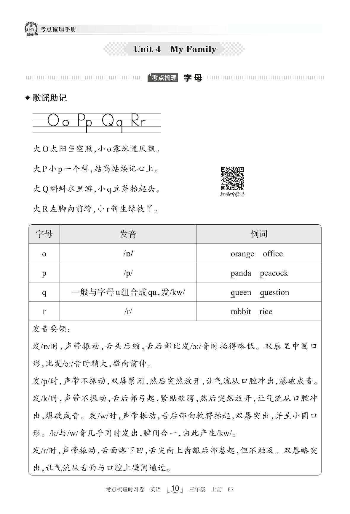 2022上册三年级英语北师版 考点梳理手册——Unit 4 My Family