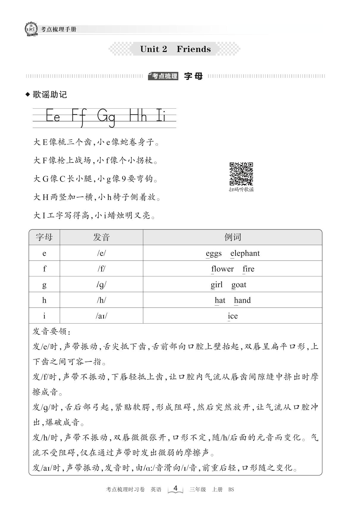 2022上册三年级英语北师版 考点梳理手册——Unit 2 Friends