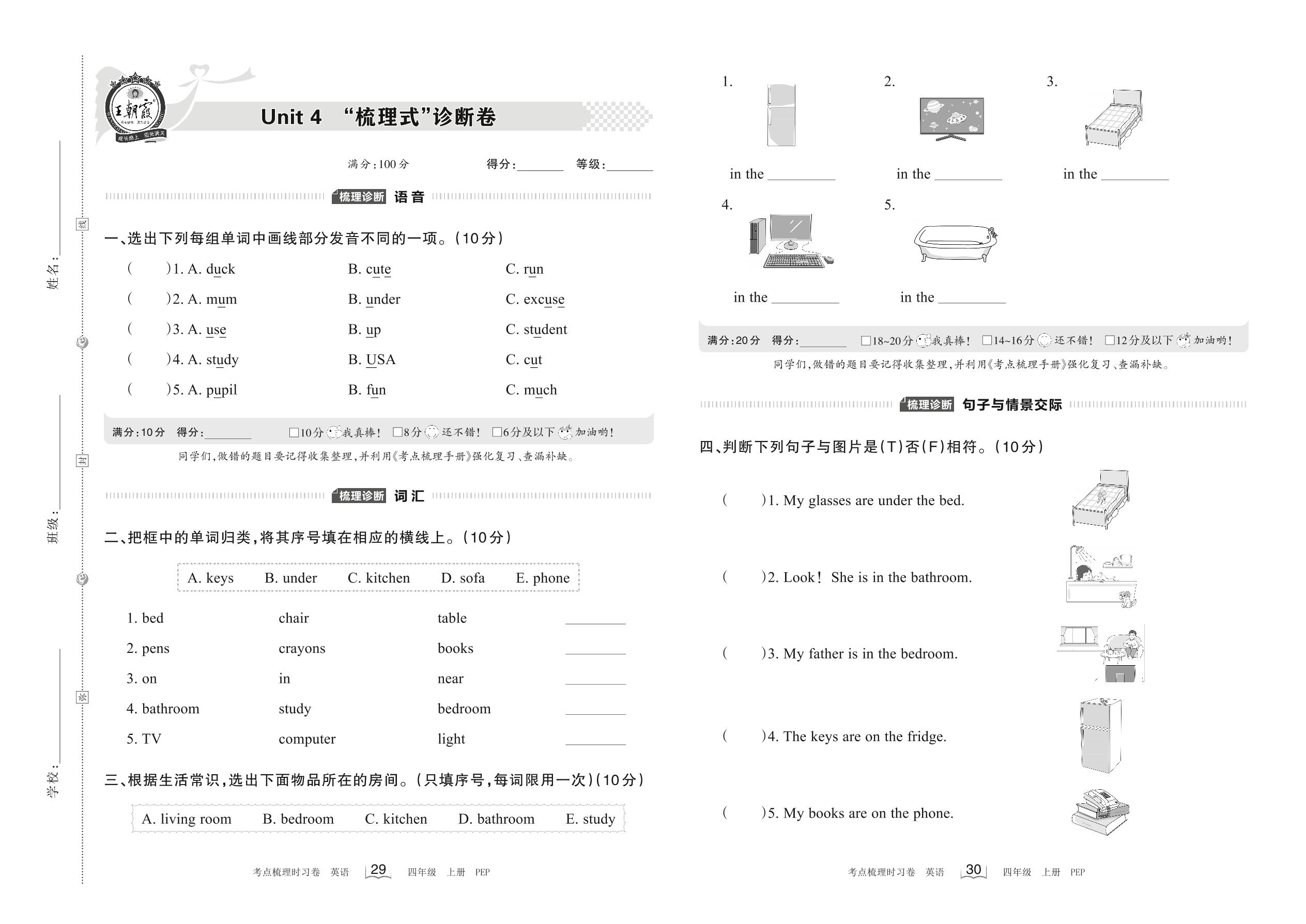 2022上册四年级英语人教PEP版 Unit 4 “梳理式”诊断卷